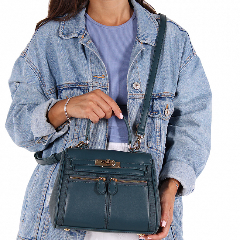 Материал: Экокожа Сумка-сэтчел, выполнена из  экокожи В размере мини. Декорирована эффектной застежкой на передней части. Дополнена золотистой фурнитурой. Данная модель закрывается на клапан. Каркас полужесткий. Носится в руке за встроенную ручку или на плече. В комплекте есть ремень с регулировкой длины. На дне предусмотрены ножки.