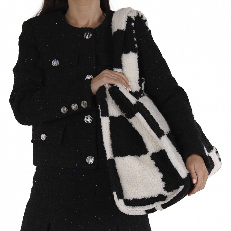 Сумка выполнена из меха. Данная модель открытая. Каркас мягкий. Носится на плече или в руке. Встроенные удлиненные ручки.