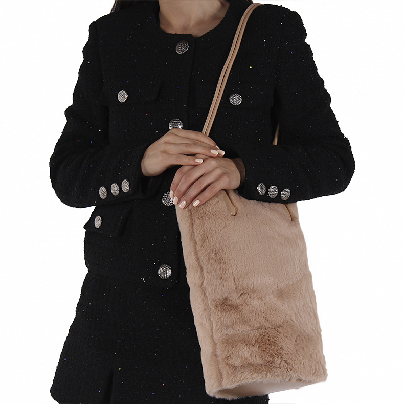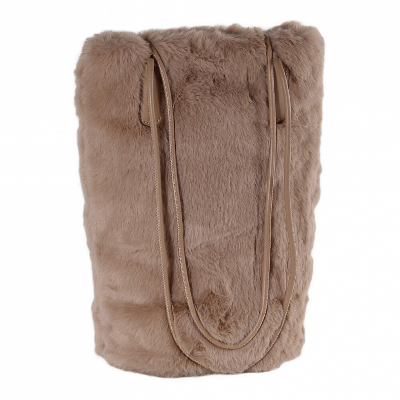 Сумка выполнена из меха. Данная модель открытая. Каркас мягкий. Носится на плече или в руке. Встроенные удлиненные ручки.