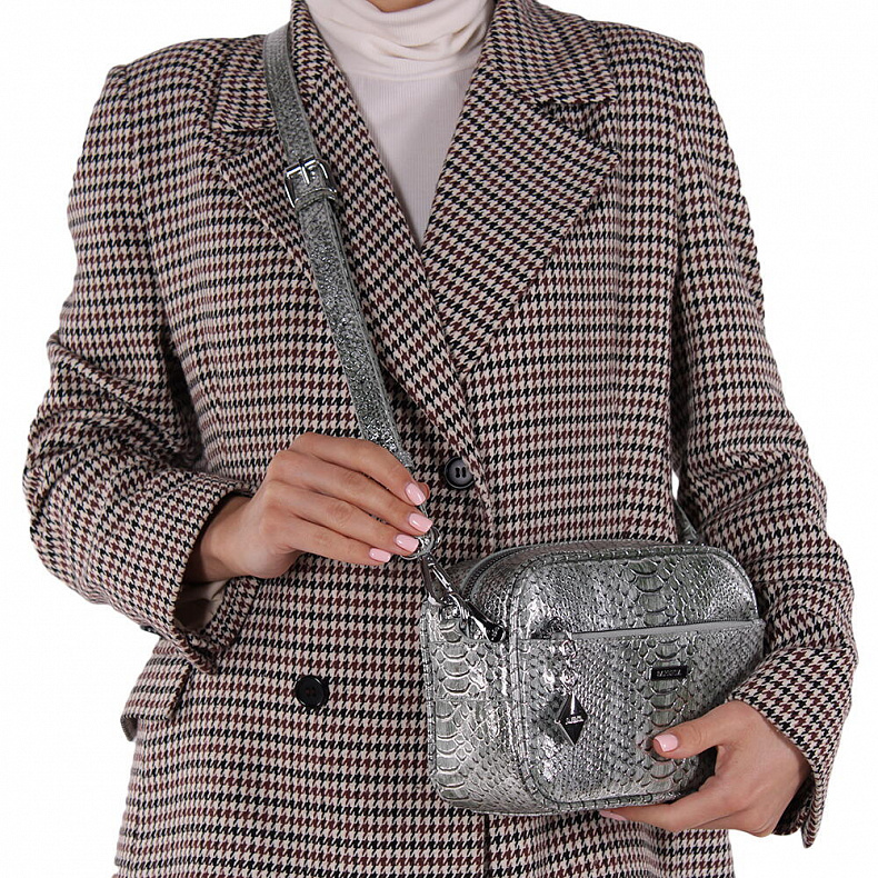 Материал: Экокожа Эффектная сумка кросс-боди, выполнена из экокожи. Дополнена серебристой фурнитурой. Данная модель закрывается на молнию. Каркас полужесткий. В комплекте съемный ремень с регулировкой длины.