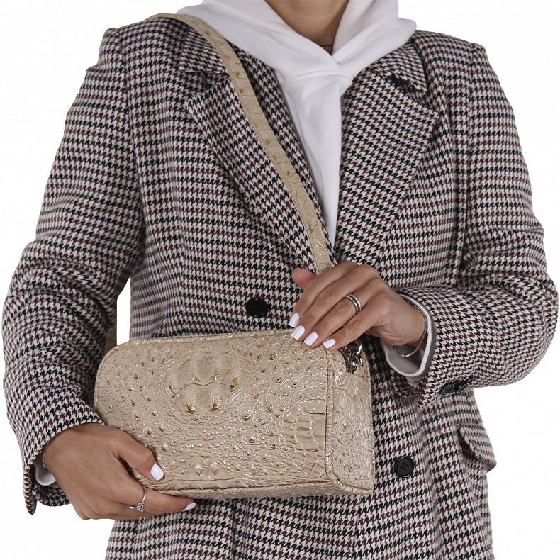 Материал: Экокожа Модель кросс-боди, выполнена из экокожи. Декорирована фактурой на корпусе. Дополнена серебристой фурнитурой. Данная модель закрывается на молнии. Каркас полужесткий. В комплекте съемный ремень с регулировкой длины.