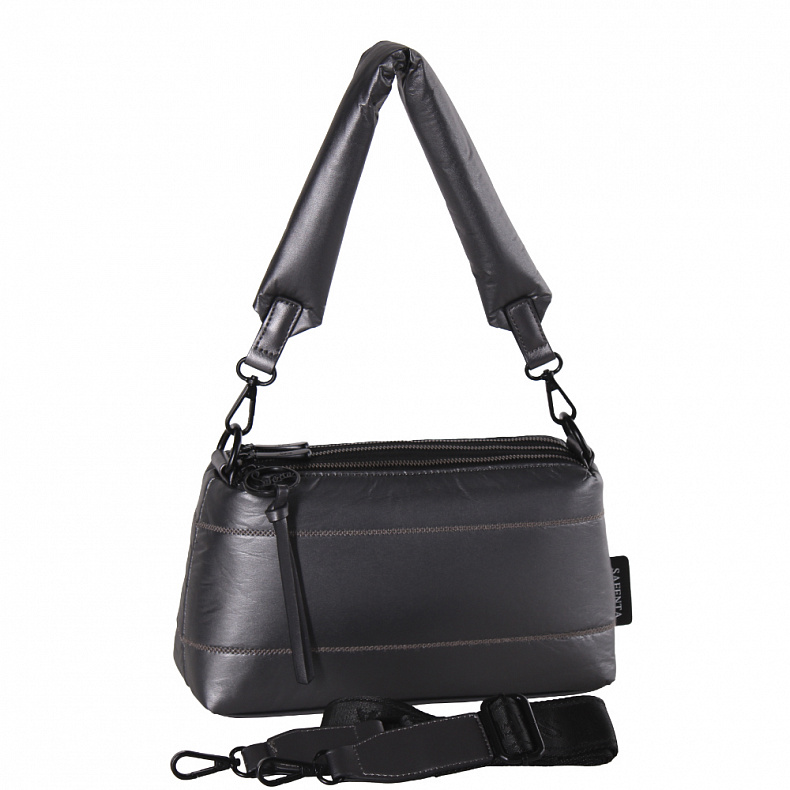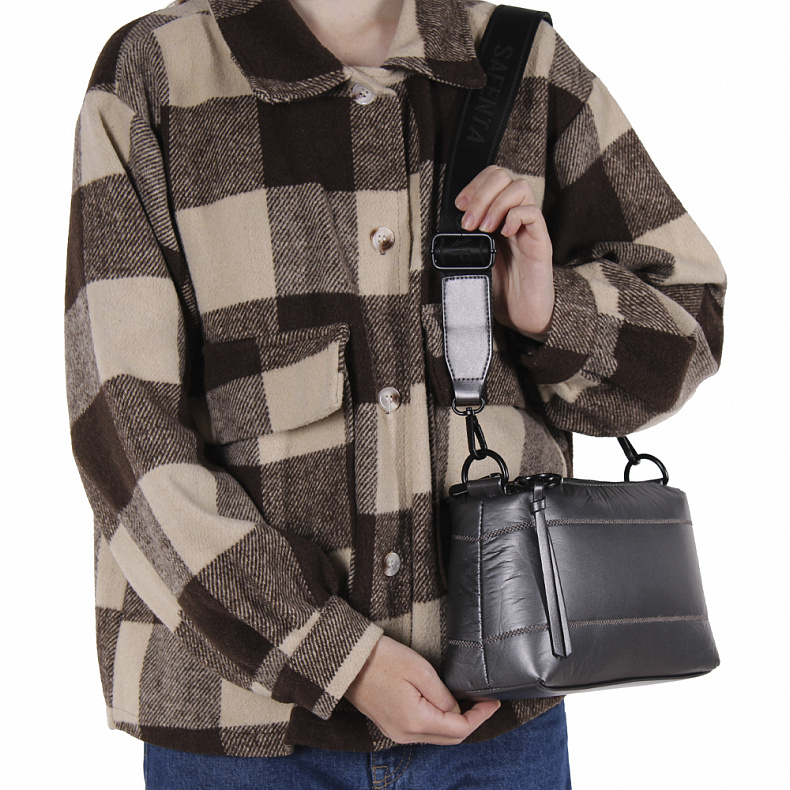 Длина (см): 26 Высота (см): 15 Вес (г): 650 Бренд: Velina Fabbiano-Safenta Материал: Экокожа Удобная женская сумка, выполнена из экокожи. Дополнена серебристой фурнитурой. Данная модель закрывается на молнию. Каркас мягкий. Носится через плечо или за ручку в руке. В комплекте есть ремень с регулировкой длины и коротка ручка. Внутри: подкладочная ткань, на боковых частях карман на молниях и открытый. Снаружи: три отдела на молнии. На передней и задней части два кармана на молнии. Комментарии к товару