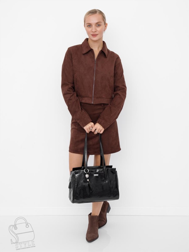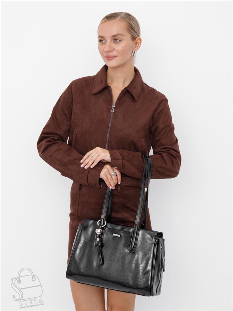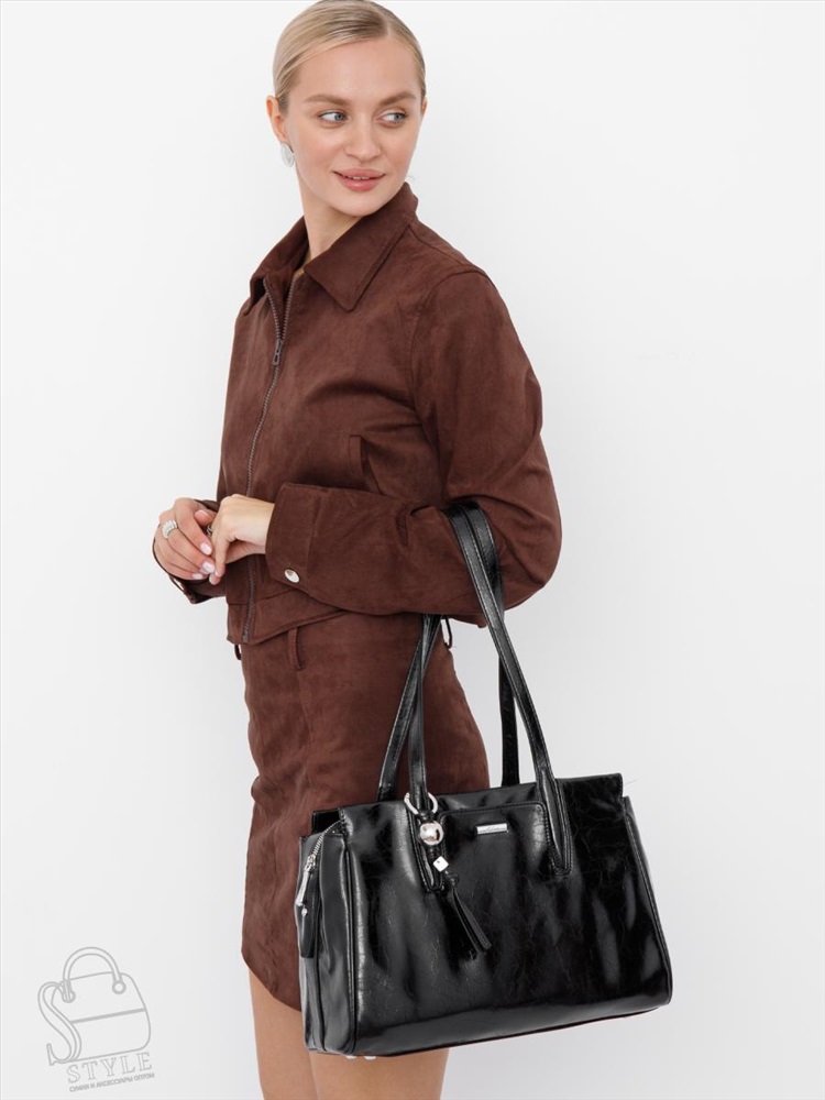 Артикул: 51150L black Материал: Экокожа Цвет: Черный Ширина (см): 11 Длина (см): 35 Высота (см): 24 Высота ручки (см): 28 Вес (г): 800 Вместительная модель, выполнена из 'экокожи. Дополнена серебристой фурнитурой. Данная модель закрывается на молнию, носится в руке или на плече за удлиненные ручки. Каркас полужесткий. Внутри: подкладочная ткань, на боковых стенках есть карман на молнии и открытый. Снаружи: основной отдел закрывается на молнию, один отдел на кнопке. На задней части карман на молнии. На передней части карман на кнопке. Комментарии к товару