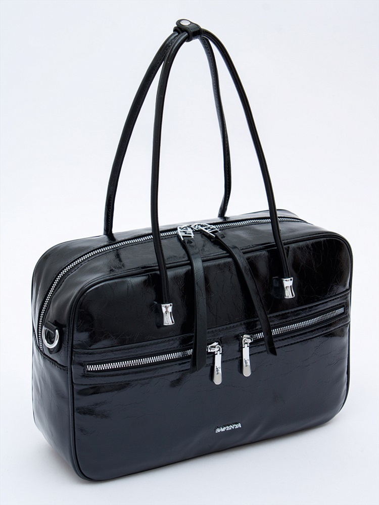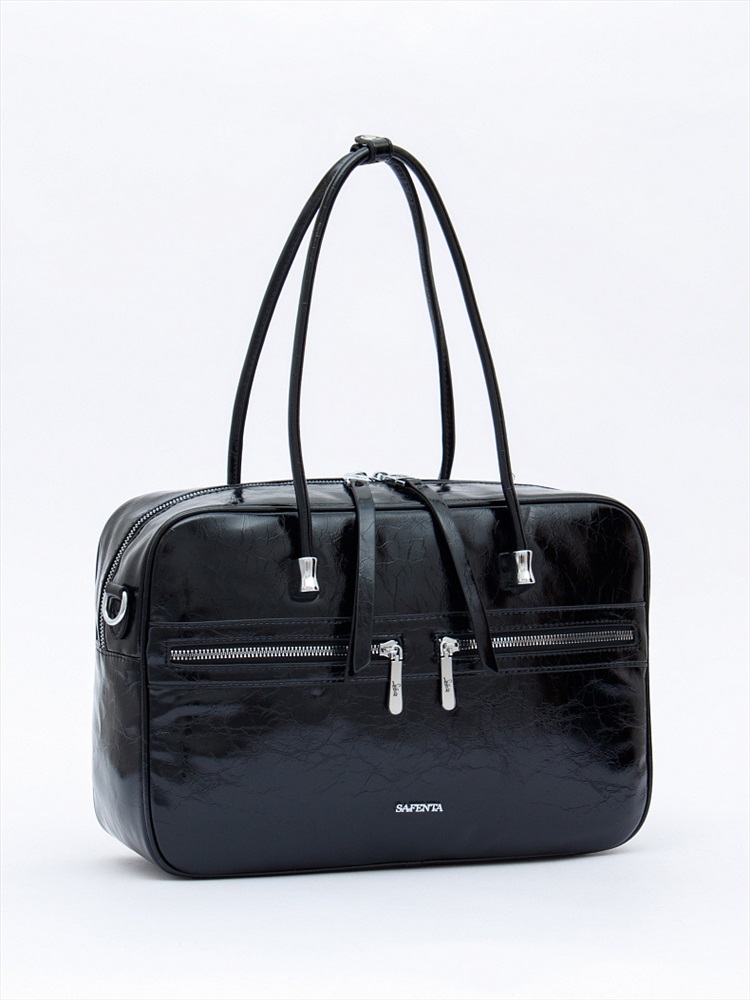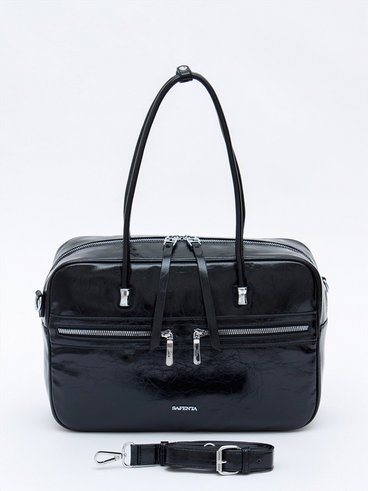 Материал: Экокожа Вместительная модель, выполнена из экокожи.  Дополнена серебристой фурнитурой. Данная модель закрывается на молнию, носится в руке за встроенные ручки. Или на плече, в комплекте имеется ремень с регулировкой длины. Каркас полужесткий.