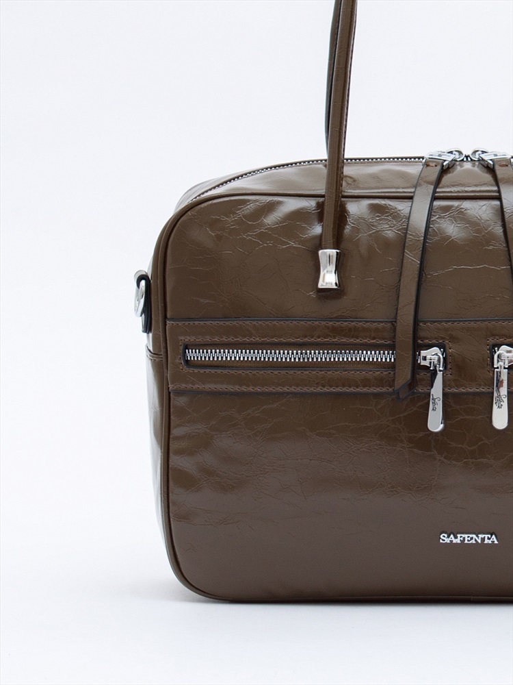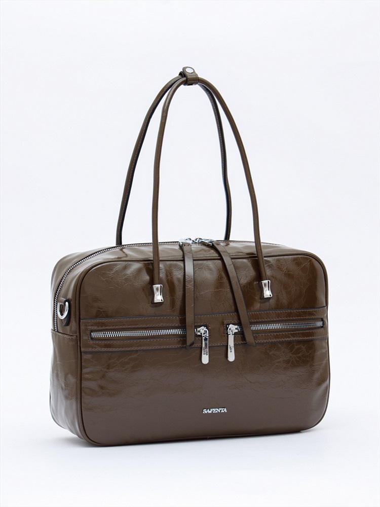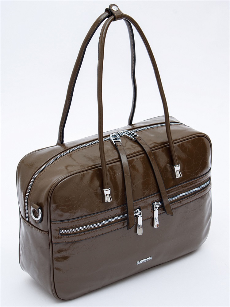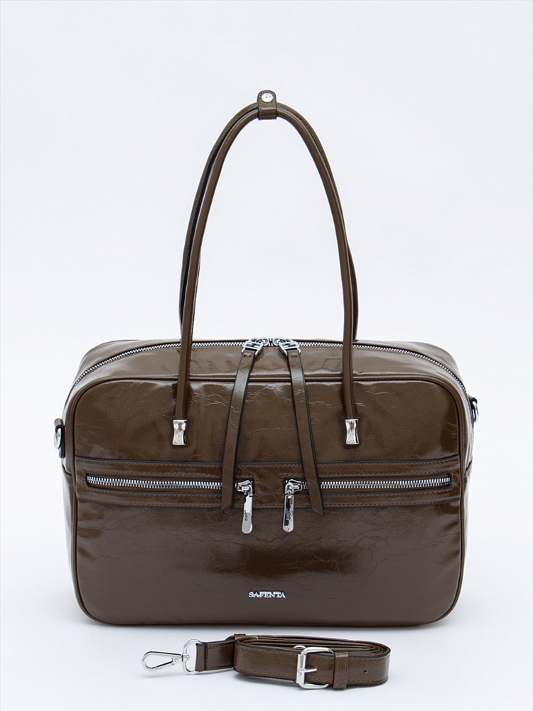 Материал: Экокожа Вместительная модель, выполнена из экокожи.  Дополнена серебристой фурнитурой. Данная модель закрывается на молнию, носится в руке за встроенные ручки. Или на плече, в комплекте имеется ремень с регулировкой длины. Каркас полужесткий.
