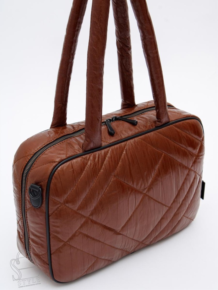 Артикул: 5149L brown Материал: Экокожа Цвет: Карамель Ширина (см): 11 Длина (см): 31 Высота (см): 23 Высота ручки (см): 32 Вес (г): 650 Сумка-дутик, выполнена из экокожи. Дополнена черной фурнитурой. Данная модель закрывается на молнию, носится на плече или в руке за удлиненные ручки. Так же в комплекте имеется ремень-стропа с регулировкой длины. Каркас мягкий. Внутри: подкладочная ткань, на боковых стенках есть карман на молнии. Снаружи: основной отдел на молнии. На задней части карман на молнии. Комментарии к товару