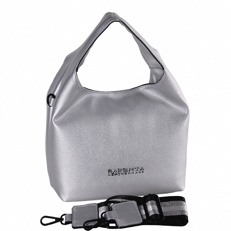 Длина (см): 23 Высота (см): 24 Вес (г): 550 Бренд: Velina Fabbiano-Safenta Материал: Экокожа Компактная модель выполнена из матовой экокожи. Дополнена серебристой фурнитурой. Данная модель закрывается на молнию, носится в руке или на плече. В комплекте имеется ремень-стропа с регулировкой длины. Внутри: на боковых частях карман на молнии и открытый. Снаружи: основной отдел застегивается на молнию. На задней части имеется карман на молнии. Комментарии к товару