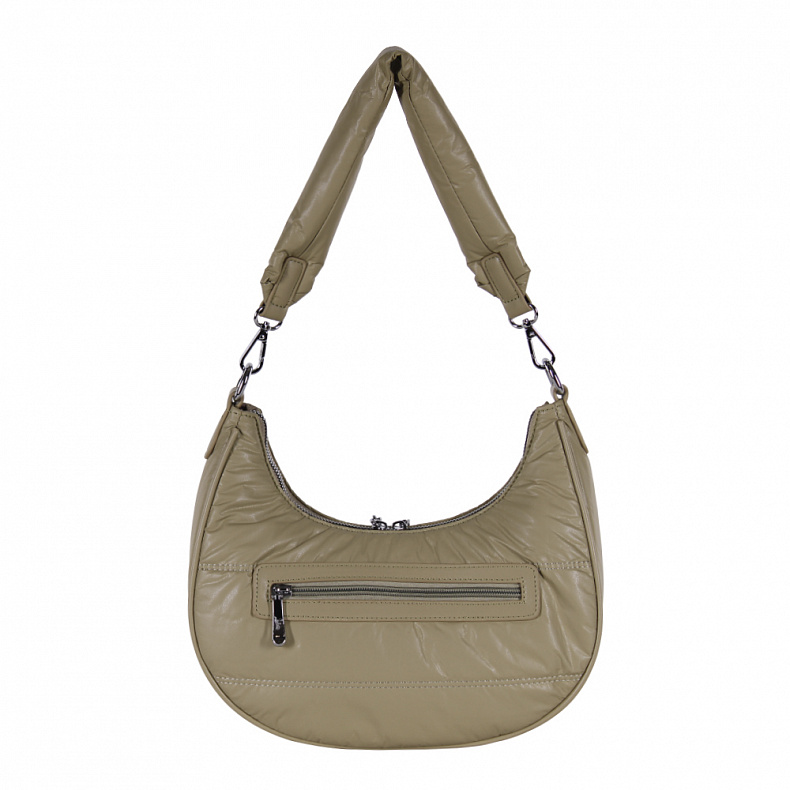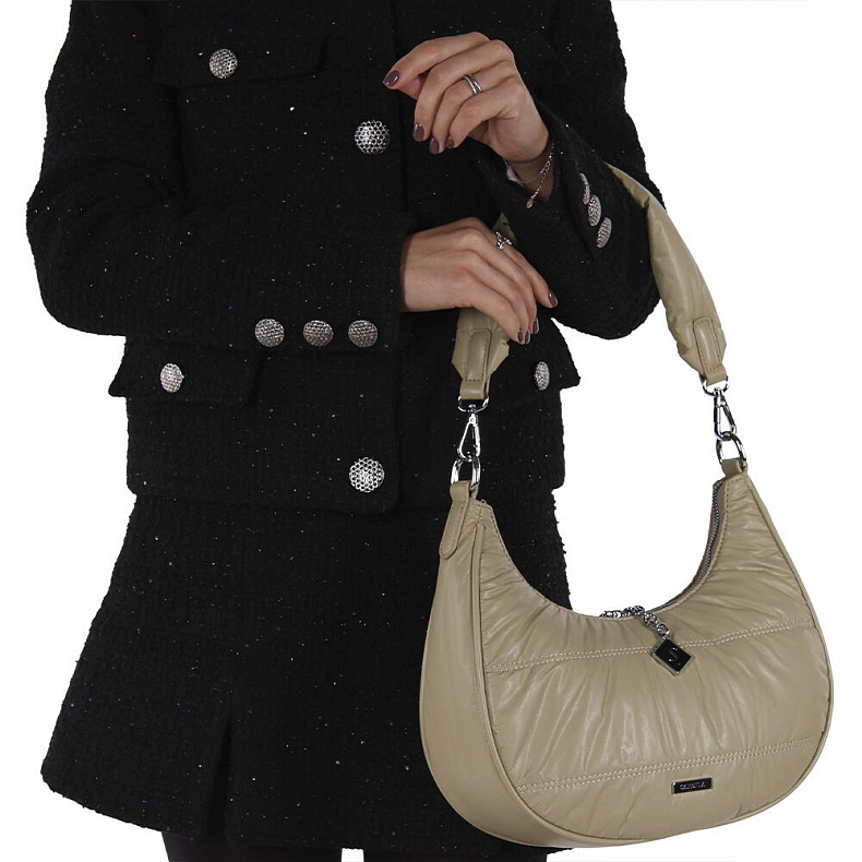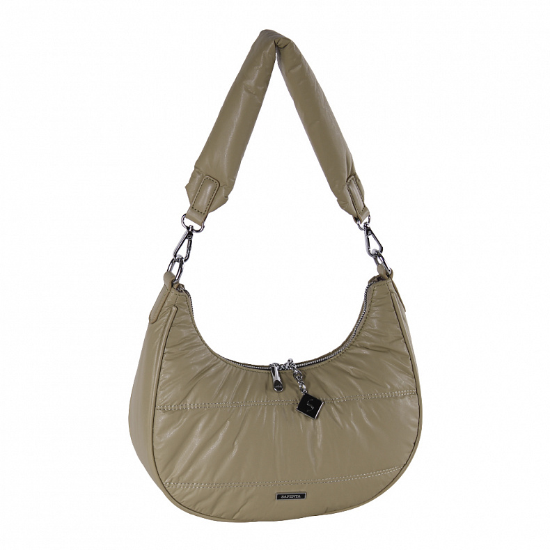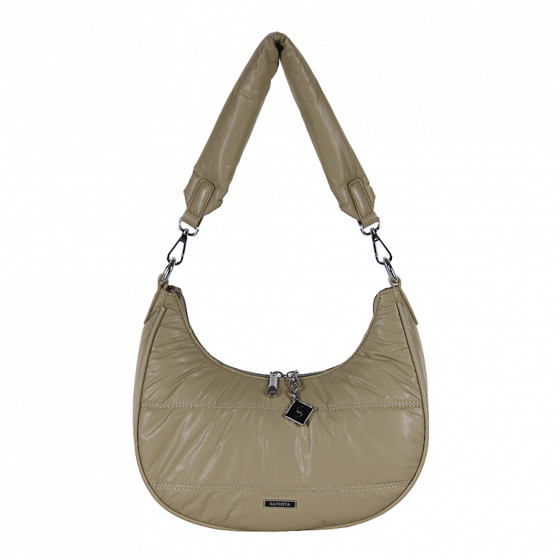 Материал: Экокожа Сумка в форме полумесяц, выполнена из экокожи. Декорирована брелоком. Дополнена серебристой фурнитурой. Данная модель закрывается на молнию, носится в руке за ручку или на плече. В комплекте имеется съемная ручка и плечевой ремень. Каркас мягкий.