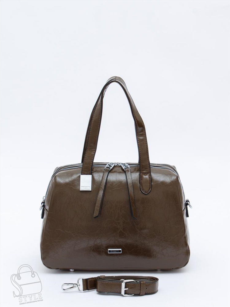 Вместительная модель, выполнена из экокожи. Дополнена серебристой фурнитурой. Данная модель закрывается на молнии, носится в руке за встроенные ручки или на плече. В комплекте имеется ремень регулируется по длине. Каркас полужесткий. На дне предусмотрены ножки.