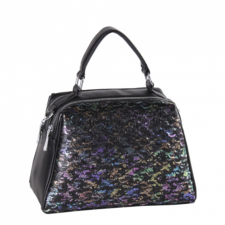 Длина (см): 29 Высота (см): 21 Вес (г): 700 Бренд: Velina Fabbiano-Safenta Материал: Экокожа Базовая модель, выполнена из экокожи. Декорирована фактурной вставкой на передней части. Дополнена серебристой фурнитурой. Данная модель закрывается на молнии, носится в руке за ручку или на плече. В комплекте имеется съемный плечевой ремень. Каркас полужесткий. Внутри: подкладочная ткань, на боковых частях карман на молнии и открытый. Снаружи: два отдела на закрываются на молнии. На задней части карман на молнии. Комментарии к товару