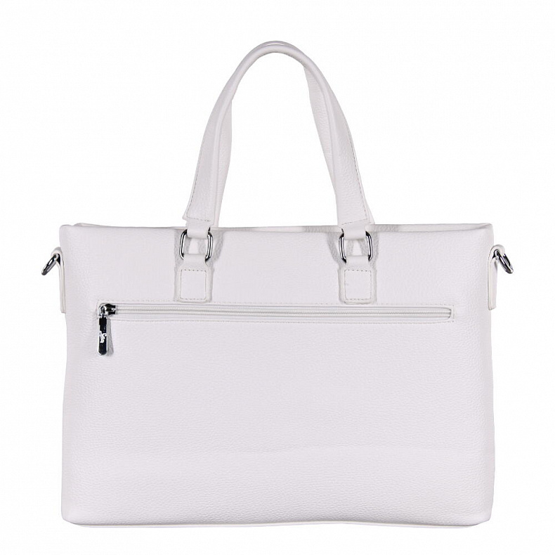 Сумка-портфель, выполнен из экокожи. Декорирована логотипом на передней части. Дополнена серебристой фурнитурой. Данная модель закрывается на молнию. Каркас полужесткий. Носится в руке за встроенные ручки или на плече за ремень. В комплекте имеется съемный ремень с регулировкой длины.