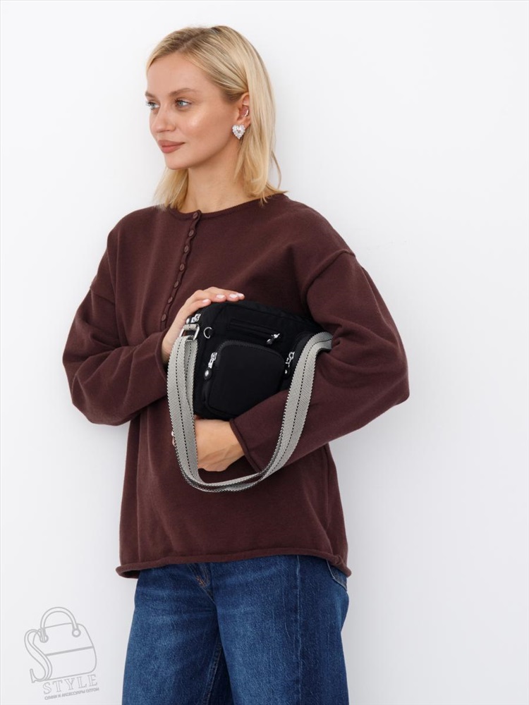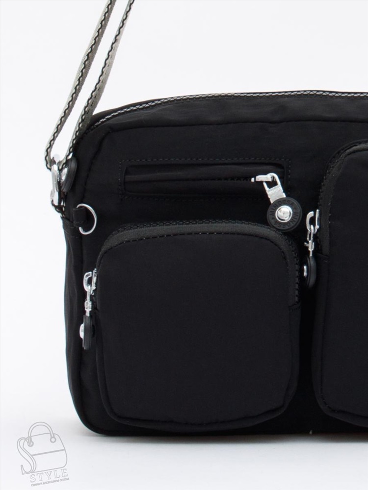 Сумка кросс-боди, выполнена из текстиля. Дополнена фурнитурой серебро. Данная модель закрывается на молнию, носится на плече за встроенный ремень с регулировкой длины. Каркас мягкий.