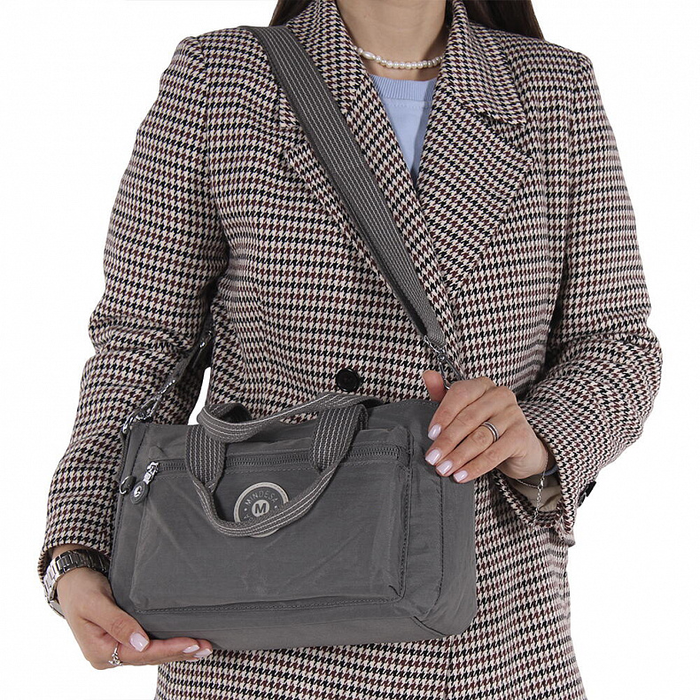 Длина (см): 25 Высота (см): 18 Вес (г): 350 Бренд: Mindesa Материал: Текстиль Сумка кросс-боди, выполнена из текстиля. Дополнена серебристой фурнитурой. Данная модель закрывается на молнию. Каркас мягкий. Носится на плече и в руке. В комплекте ремень-стропа регулируется по длине. Внутри: подкладочная ткань, на боковых частях карман на молнии и открытый. Снаружи: Отдел на молнии . На задней частях карман на молнии. На передней части так же карман на молнии. Комментарии к товару