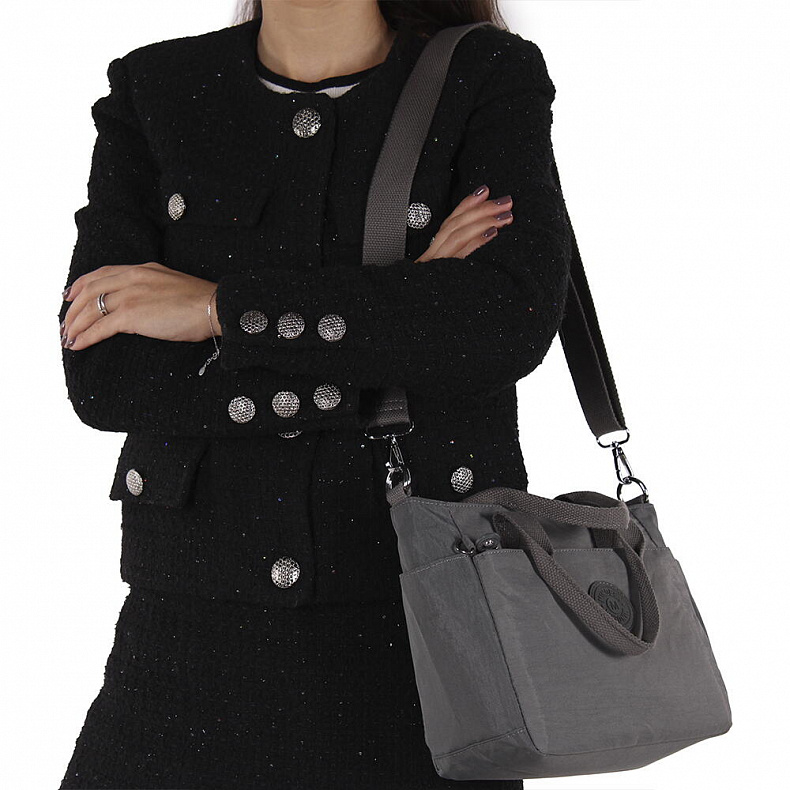 Материал: Текстиль Легкая сумка, выполнена из текстиля. Декорирована логотипом на передней части. Дополнена серебристой фурнитурой. Данная модель закрывается на молнии, носится в руке за ручку или на плече. В комплекте имеется съемный плечевой ремень. Каркас мягкий.