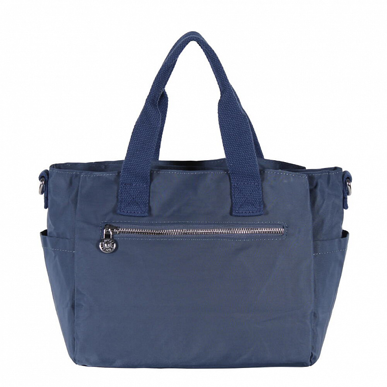 Легкая сумка, выполнена из текстиля. Декорирована логотипом на передней части. Дополнена серебристой фурнитурой. Данная модель закрывается на молнии, носится в руке за ручку или на плече. В комплекте имеется съемный плечевой ремень. Каркас мягкий.