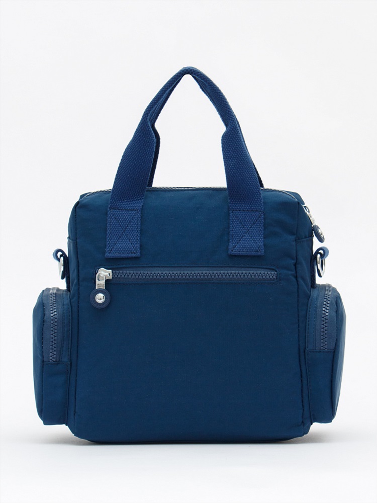 Снаружи: основной отдел закрывается на молнию. На задней части, передней и по бокам карманы на молниях.