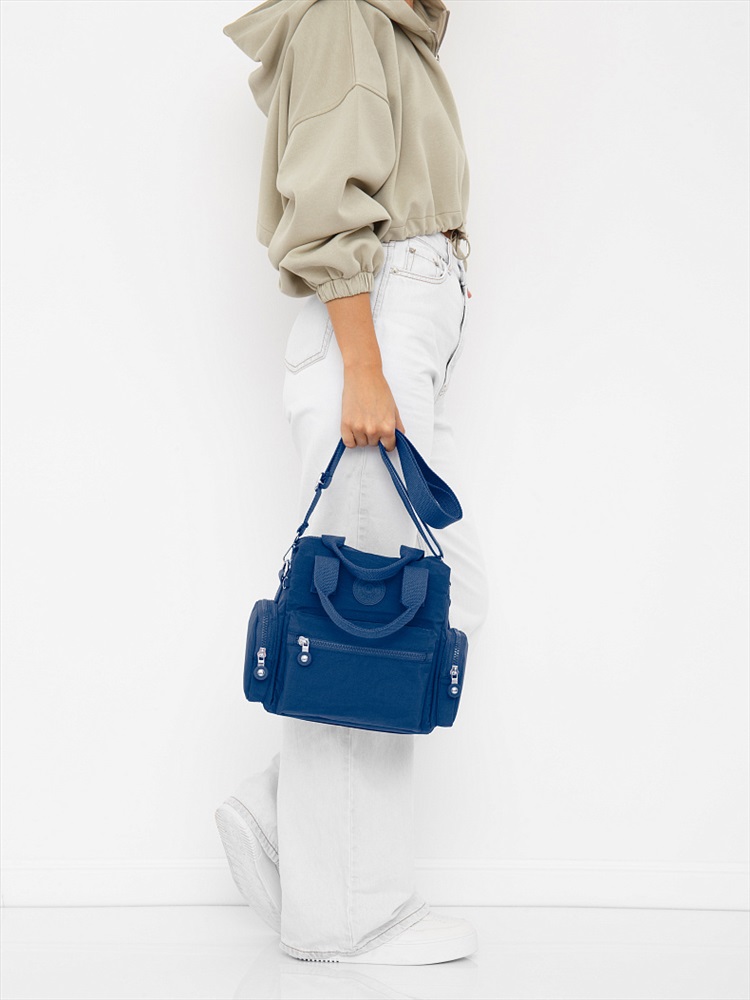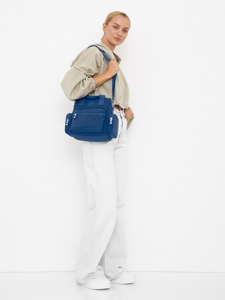 Удобная сумка выполнена из текстиля. Дополнена серебристой фурнитурой. Данная модель закрывается на молнию, носится в руке или на плече. В комплекте предусмотрен ремень-стропа с регулировкой длины. А так же встроенные ручки. Каркас мягкий.