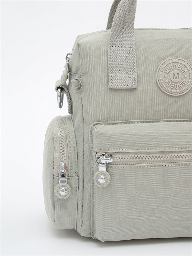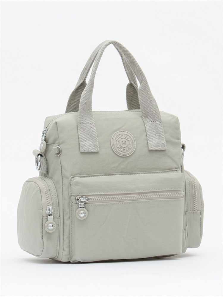 Снаружи: основной отдел закрывается на молнию. На задней части, передней и по бокам карманы на молниях.