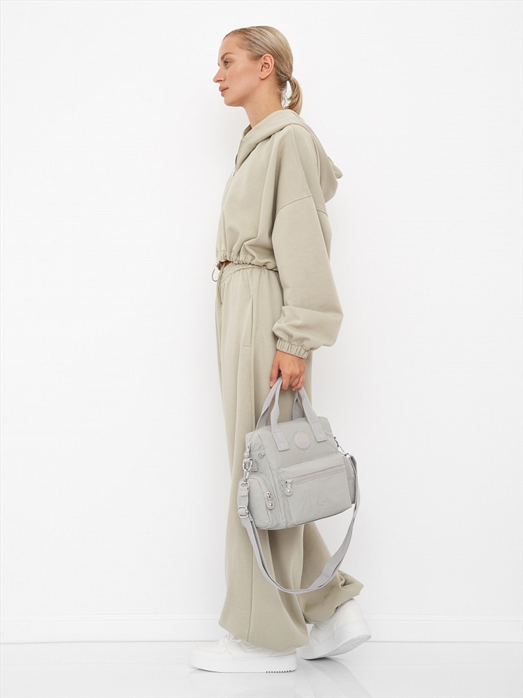 Внутри: подкладочная ткань, на боковых стенках есть карман на молнии.