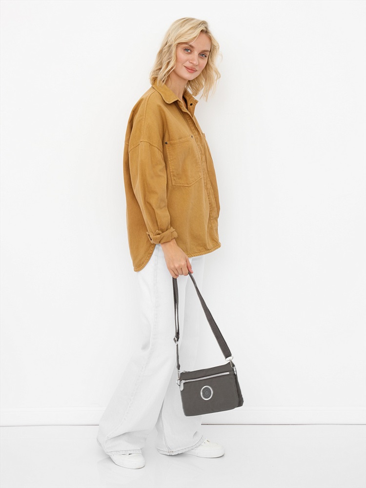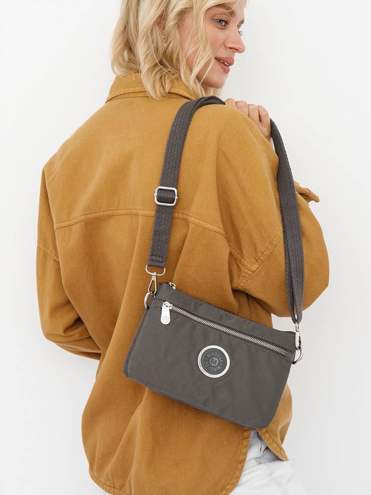 Длина (см): 23 Высота (см): 15 Вес (г): 300 Бренд: Mindesa Материал: Текстиль Модель кросс-боди, выполнена из текстиля. Дополнена серебристой фурнитурой. Данная модель закрывается на молнии, носится в руке или на плече. В комплекте предусмотрен ремень с регулировкой длины. Каркас мягкий. Внутри: подкладочная ткань, на боковых стенках есть карман на молнии и открытый. Снаружи: основной отдел закрывается на молнию. На задней и передней частях карманы на молниях. Комментарии к товару