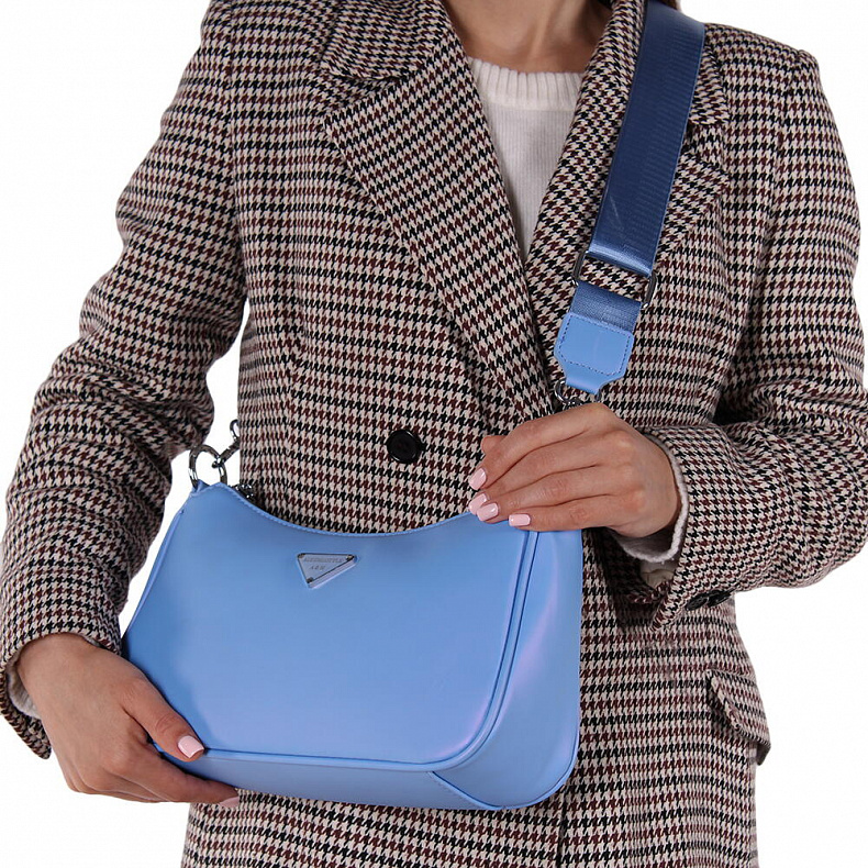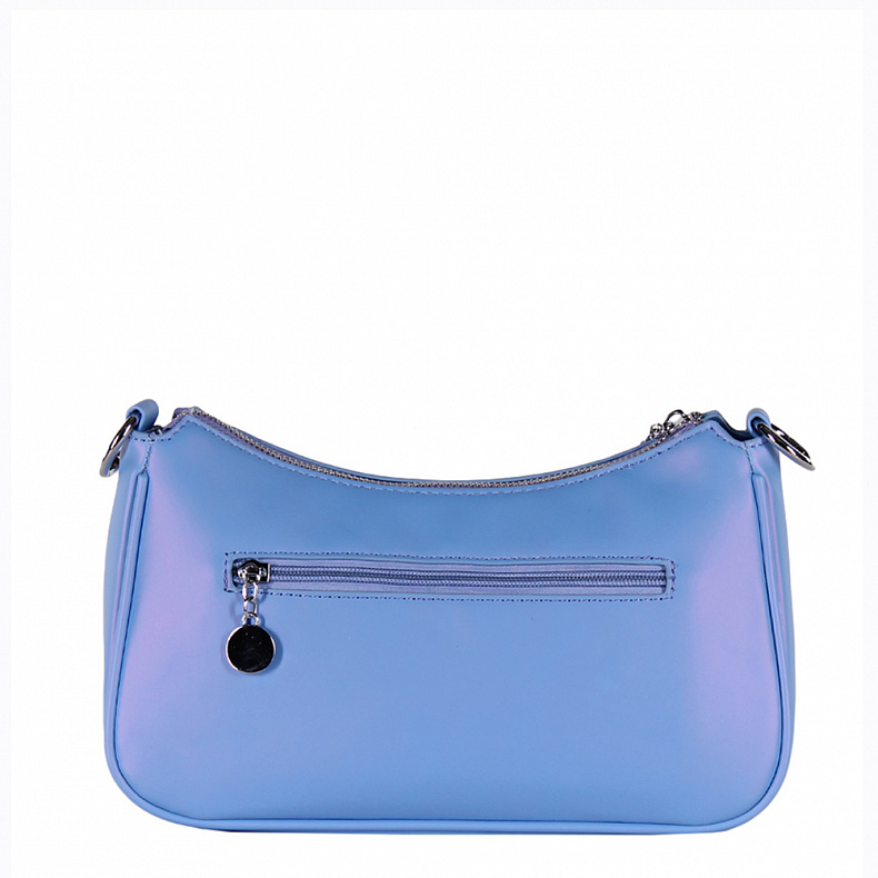 Сумка выполнена из матовой экокожи. Дополнена серебристой фурнитурой. Данная модель закрывается на молнию. Каркас полужесткий. Носится в руке или на плече. В комплекте съемный ремень-стропа с регулировкой длины.