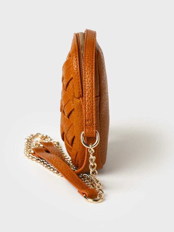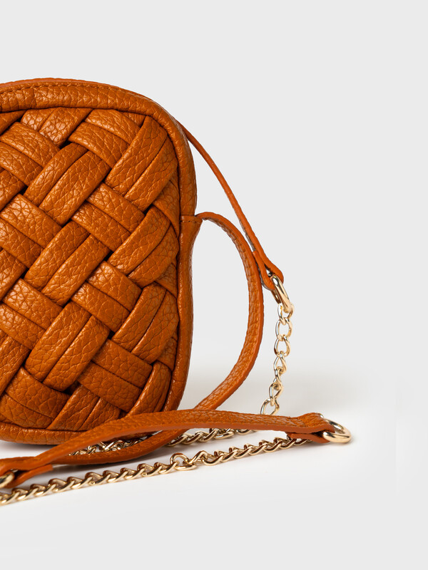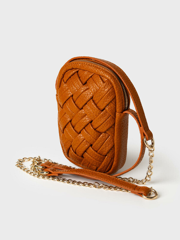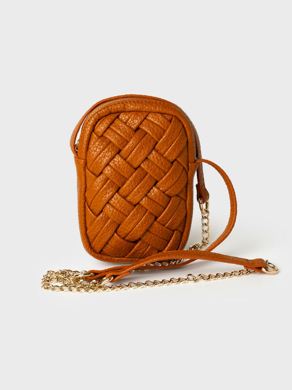 Небольшая элегантная сумка кросс-боди вытянутой формы. Сумка выполнена из плетеной искусственной кожи. Сумка имеет плечевой ремень, состоящий из цепочки и кожаной детали на плече, поэтому ремень не будет сползать с плеча. Сумка имеет одно отделение на молнии. Внутри имеется небольшой карман для телефона. Параметры сумки: ширина - 12см, высота - 18 см, глубина - 5 см