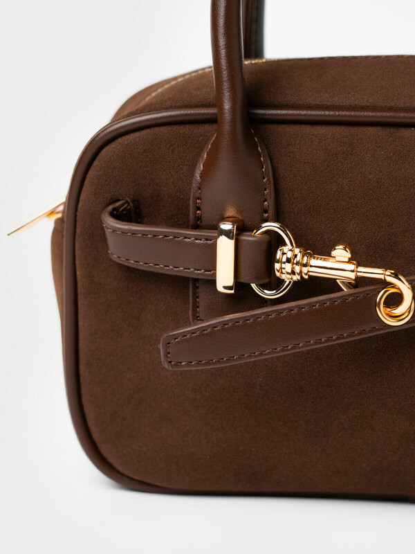 Производитель: PlayToday Небольшая сумка трендовой формы выполнена из искусственной замши с отделкой из искусственной кожи. Сумка имеет две ручки и плечевой регулируемый ремень. Ее можно носить как в руках, так и как кросс-боди. Сумка имеет одно отделение. Внутри имеется небольшой карман на молнии. Параметры сумки: ширина - 24см, высота - 9 см, глубина - 13 см