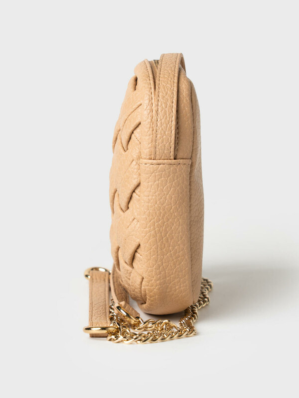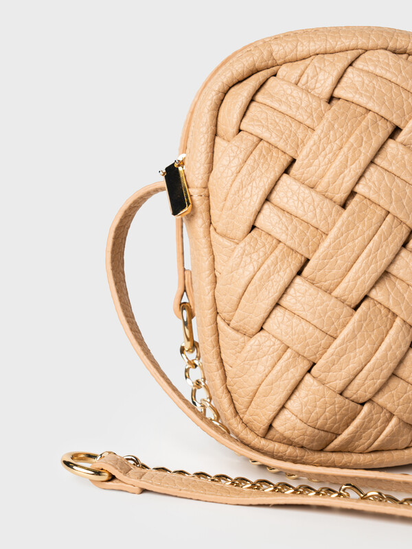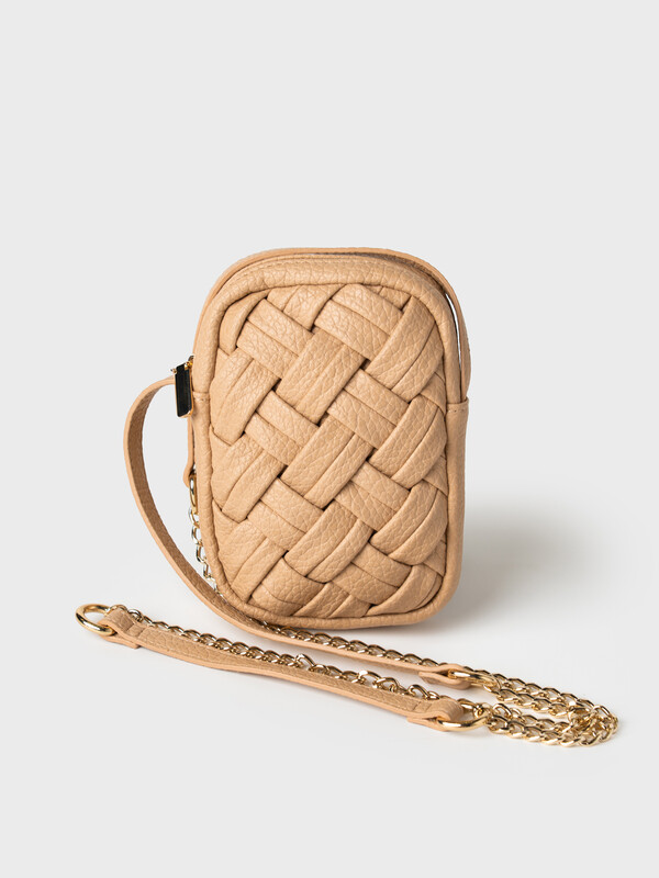 Небольшая элегантная сумка кросс-боди вытянутой формы. Сумка выполнена из плетеной искусственной кожи. Сумка имеет плечевой ремень, состоящий из цепочки и кожаной детали на плече, поэтому ремень не будет сползать с плеча. Сумка имеет одно отделение на молнии. Внутри имеется небольшой карман для телефона. Параметры сумки: ширина - 12см, высота - 18 см, глубина - 5 см