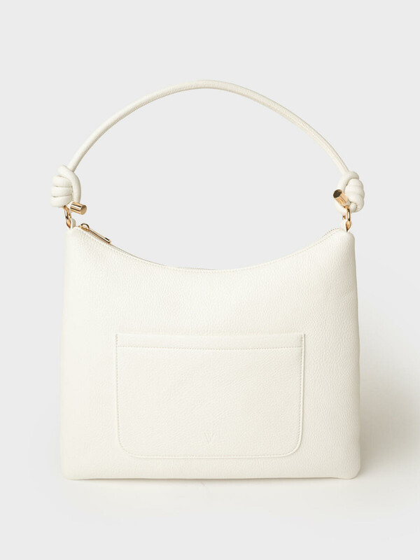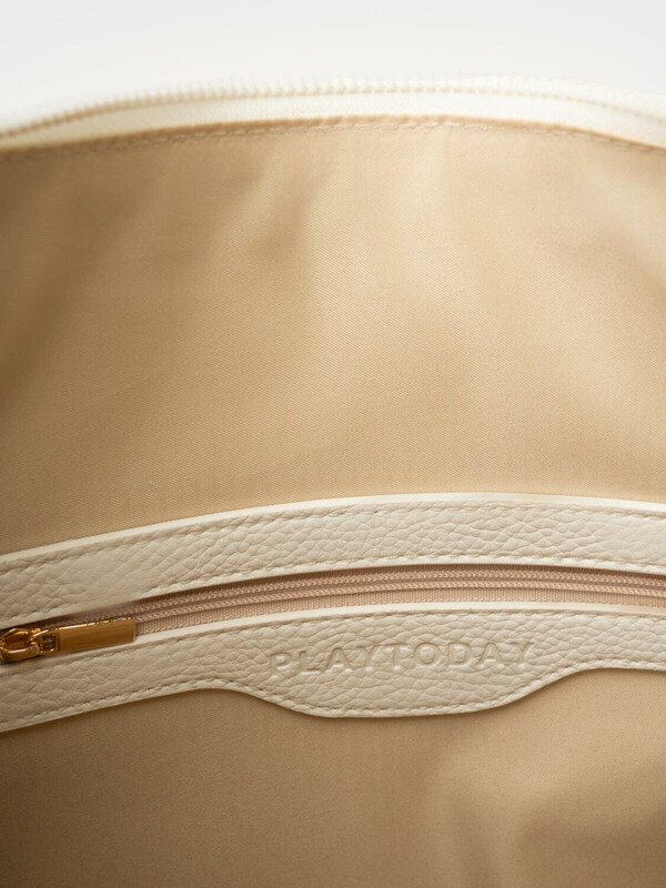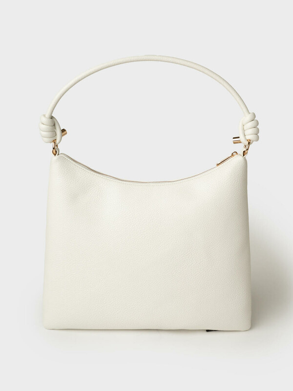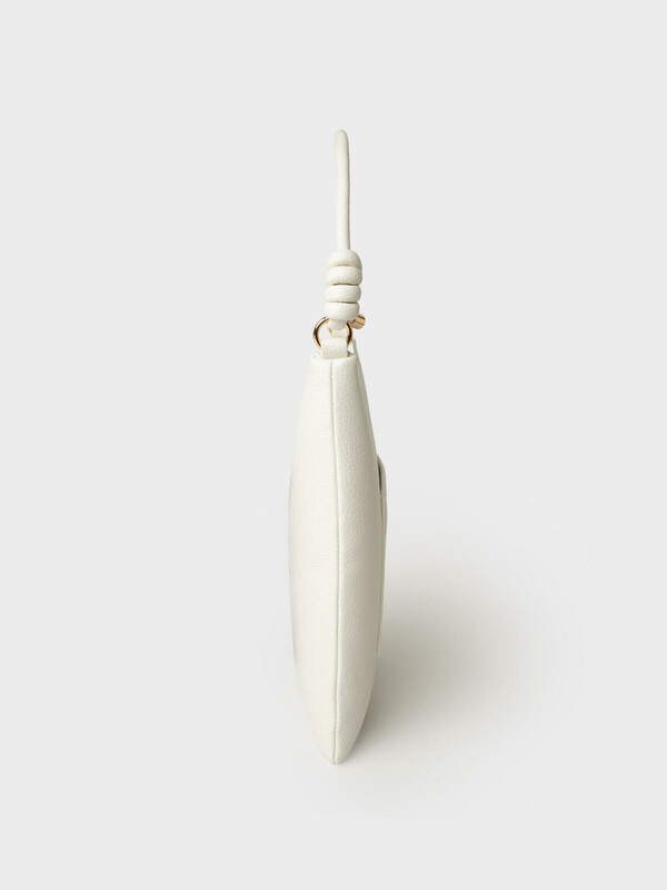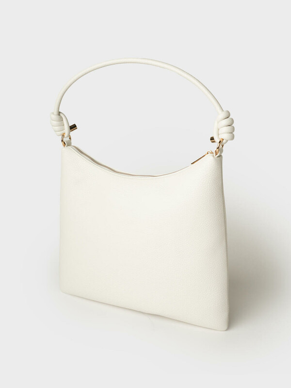 Трендовая женская сумка на плечо. Сумка выполнена из мягкой тисненной кожи молочного цвета. Сумка имеет основное отделение на молнии, сзади имеется карман для транспортной карты. Внутри есть три кармана: два открытых и один на молнии. Параметры сумки: высота - 28 см, ширина - 34 см, глубина - 2 см. В подарок идет брендированный пыльник.