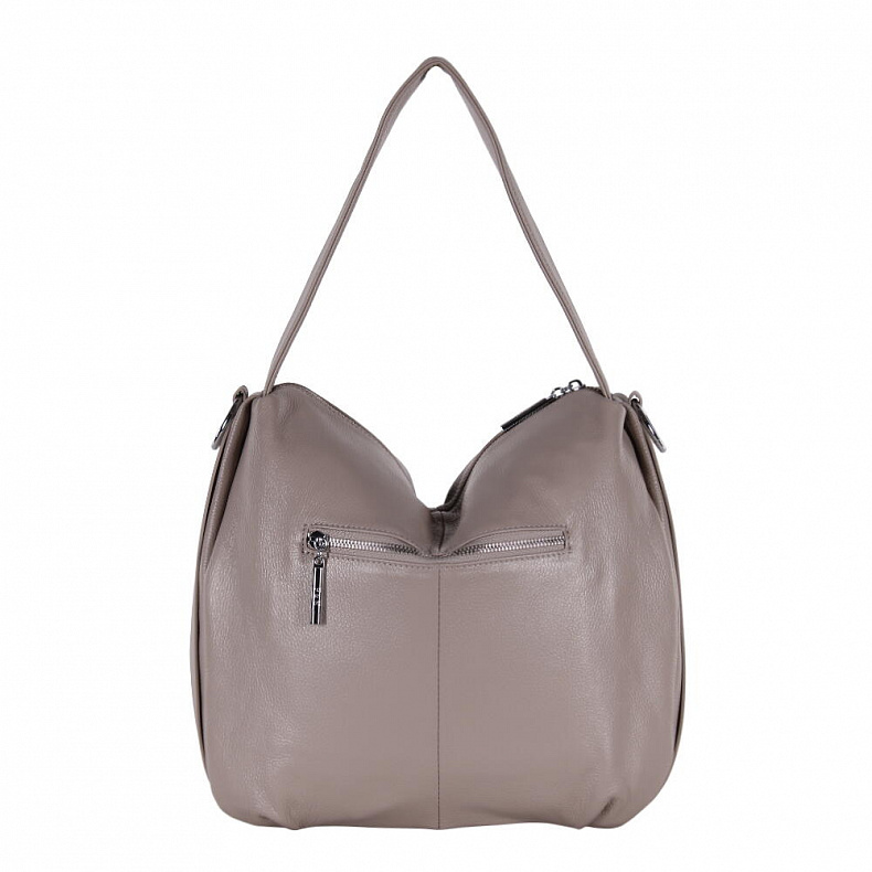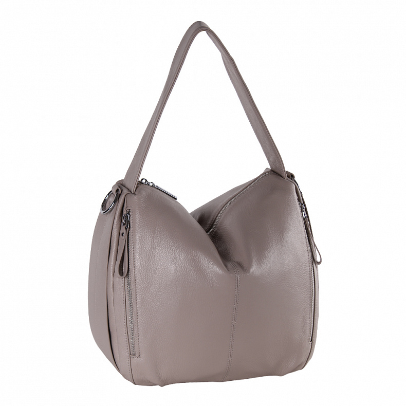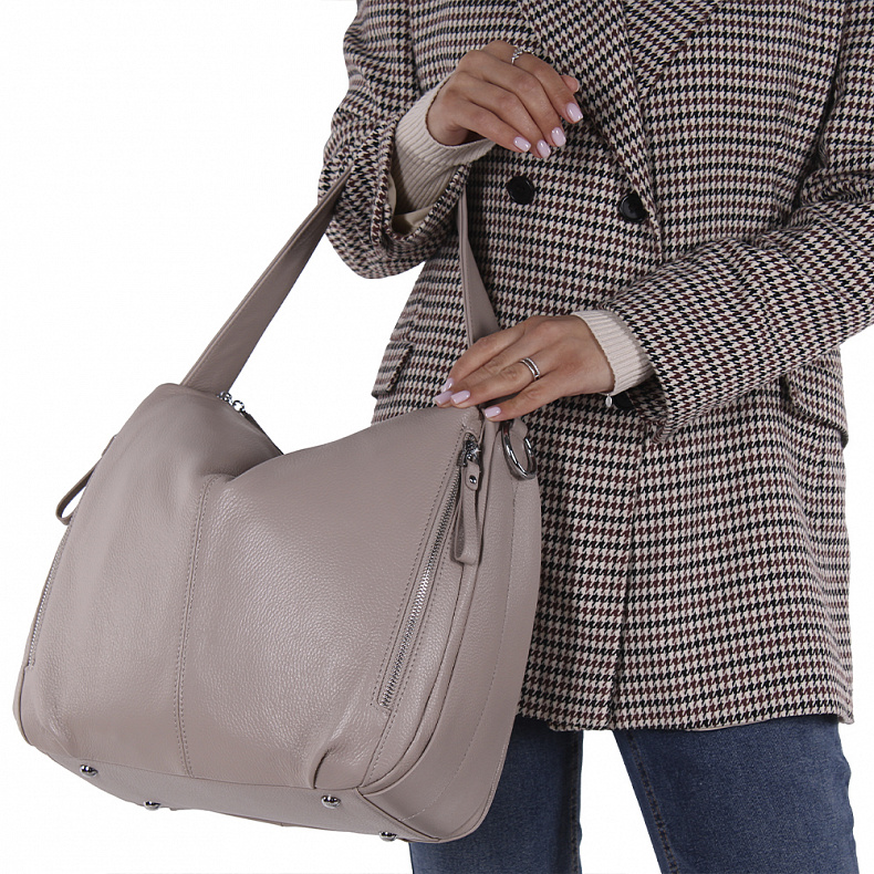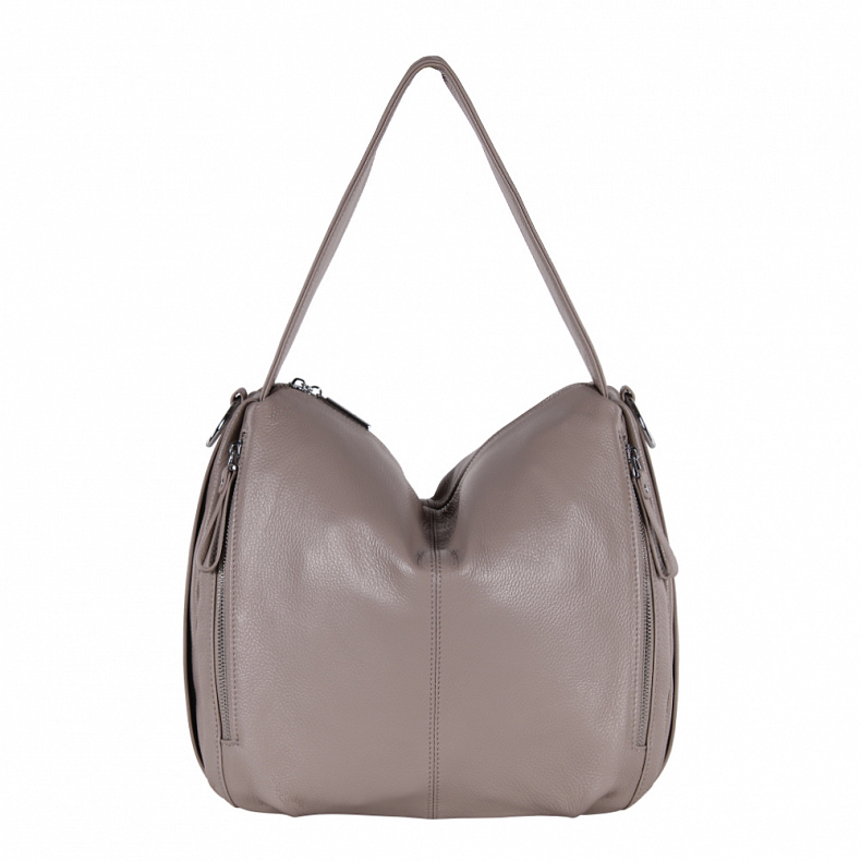 Вместительная сумка, выполнена натуральной кожи. Дополнена серебристой фурнитурой. Данная модель закрывается на молнию, носится в руке или на плече. В комплекте есть ремень съемный с регулировкой длины.. Каркас мягкий. На дне предусмотрены ножки.