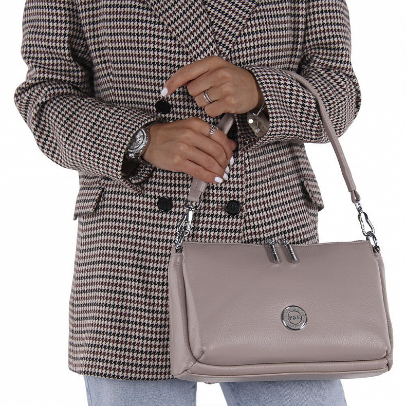 Длина (см): 26 Высота (см): 16 Вес (г): 750 Бренд: Polina&Eiterou Материал: Натуральная кожа Сумка базовая выполнена из натуральной кожи. Декорирована логотипом на передней части. Дополнена серебристой фурнитурой. Данная модель закрывается на молнию. Каркас полужесткий. Носится в руке или на плече. В комплекте съемный ремень с регулировкой длины и удлиненная ручка. Внутри: подкладочная ткань. На боковых частях карман на молнии и открытый. Снаружи: основной отдел на молнии. На задней части карман на молнии. Комментарии к товару