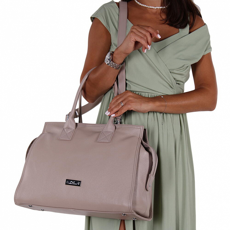Длина (см): 38 Высота (см): 25 Вес (г): 1100 Бренд: Polina&Eiterou Материал: Натуральная кожа Вместительная модель, выполнена из натуральной кожи. Дополнена серебристой фурнитурой. Данная модель закрывается на молнию. Каркас мягкий. Носится в руке за встроенные ручки или на плече. В комплекте съемный ремень с регулировкой длины. Удлиненная молния фиксируется за кнопки. На дне предусмотрены ножки. Внутри: подкладочная ткань. На боковых частях два кармана на молниях и два без. Снаружи: отдел на молнии, на задней части карман на молнии. Комментарии к товару