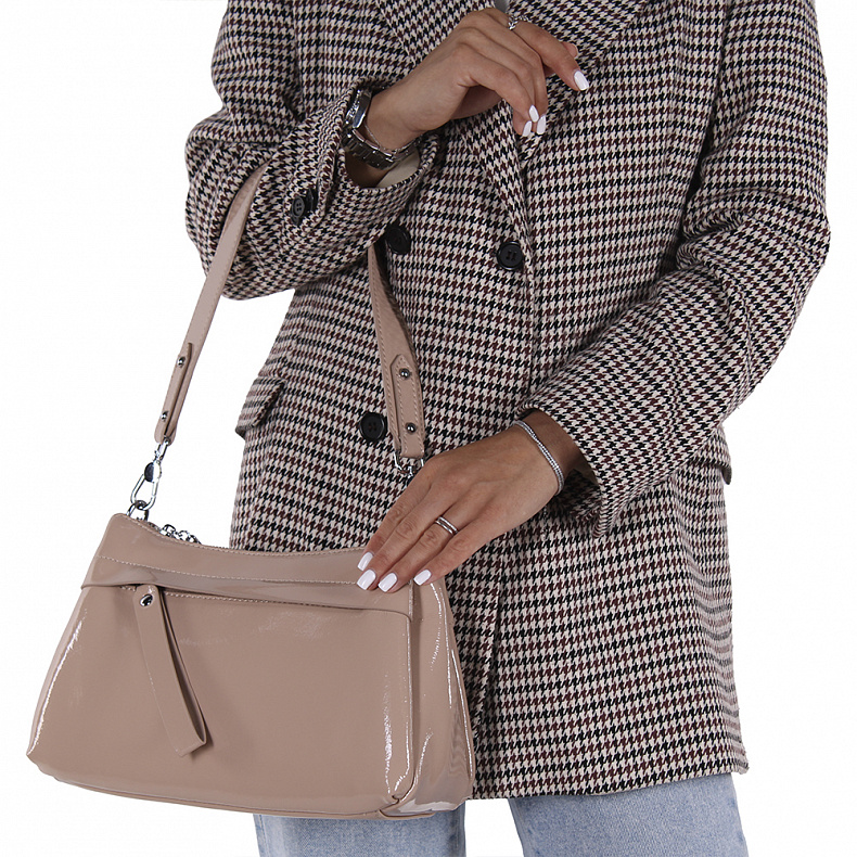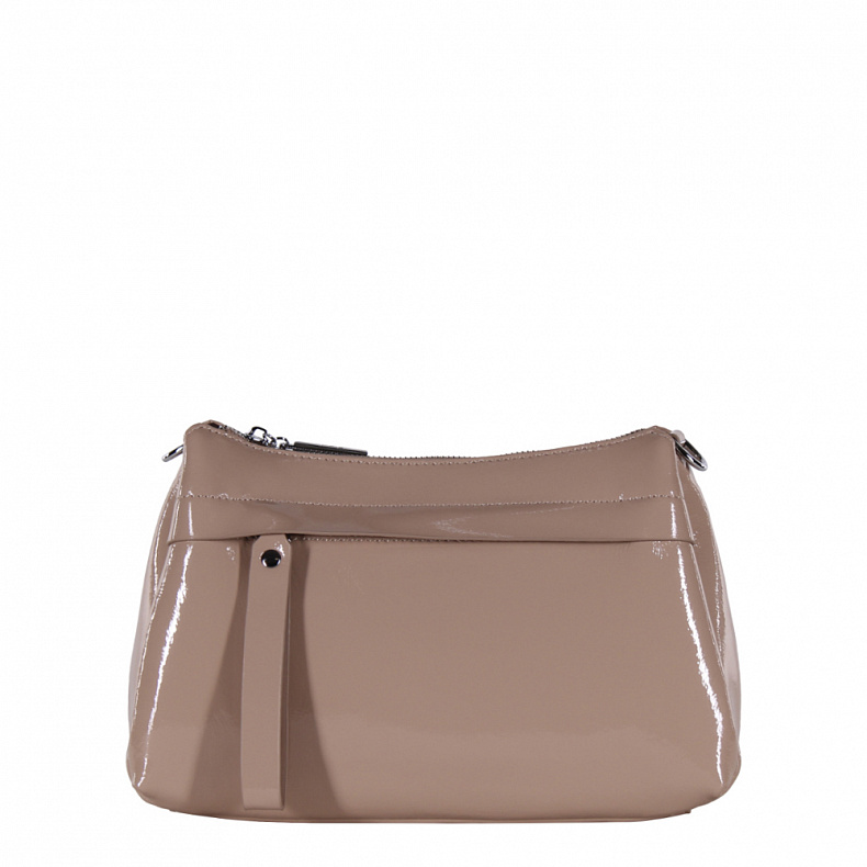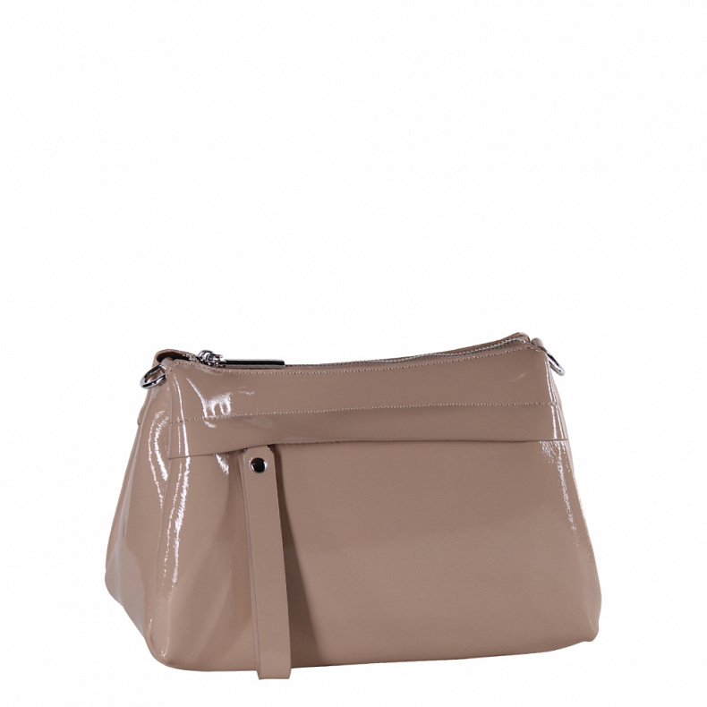 Материал: Натуральная кожа Сумка среднего размера, выполнена из натуральной лаковой кожи.  Декорирована брелоком на "собачке". Дополнена серебристой фурнитурой. Данная модель закрывается на молнию. Каркас полужесткий. Носится в руке или на плече. В комплекте съемный ремень с регулировкой длины и удлиненная ручка.