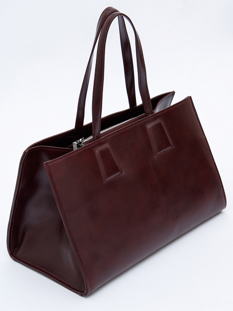 Модель в лаконичном дизайне с широким дном, выполнена из натуральной кожи. Дополнена серебристой фурнитурой. Данная модель закрывается на молнию, носится в руке за встроенные ручки. Или на плече, в комплекте имеется ремень с регулировкой длины. Каркас мягкий.