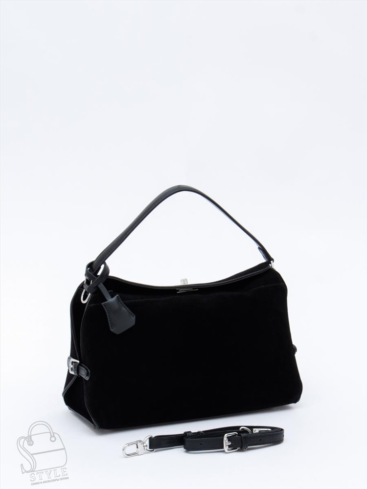 Артикул: 1026LF black Материал: Замша Цвет: Черный Ширина (см): 10 Длина (см): 29 Высота (см): 18 Высота ручки (см): 13 Вес (г): 700 Модель с клапаном, выполнена из замши. Декорирована ремнями по бокам. Дополнена серебристой фурнитурой. Данная модель закрывается на клапан. Носится в руке или на плече. В комплекте имеется встроенная ручка и плечевой ремень с регулировкой длины. Каркас полужесткий. Внутри: подкладочная ткань, на боковых стенках есть карман на молнии и открытый. Снаружи: основной отдел закрывается на молнию под клапаном. Комментарии к товару