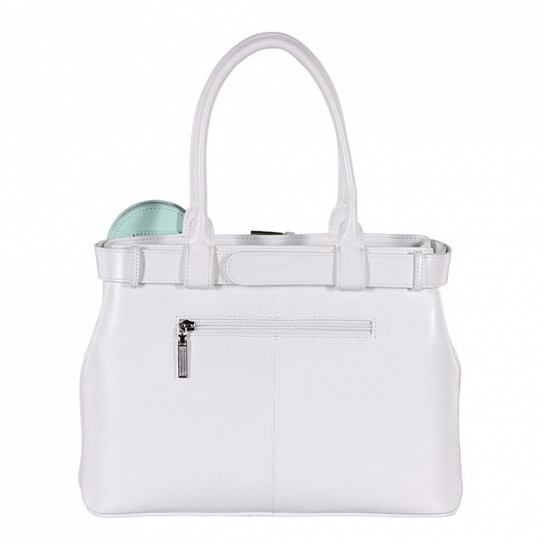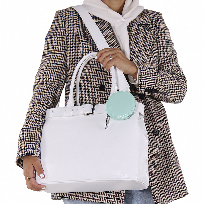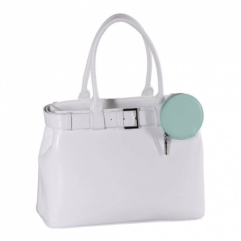 Базовая модель, выполнена из натуральной кожи. Дополнена серебристой фурнитурой. Данная модель закрывается на молнию, носится в руке за ручки или через плечо. В комплекте имеется съемный ремень с регулировкой длины. И яркая ключница.