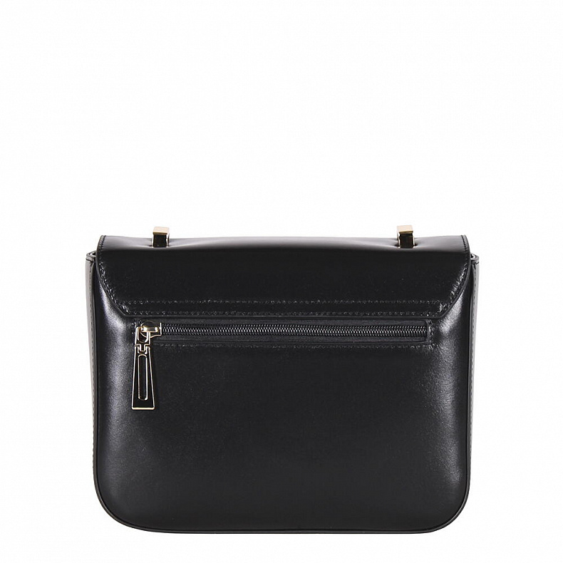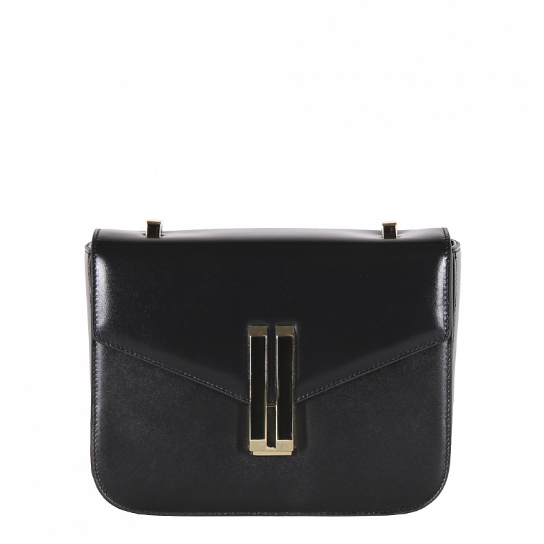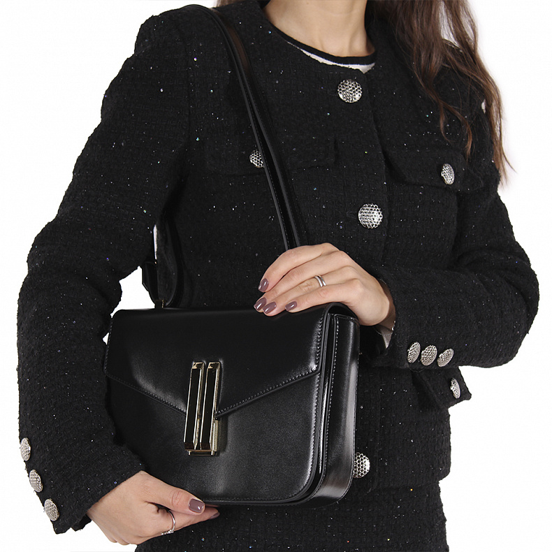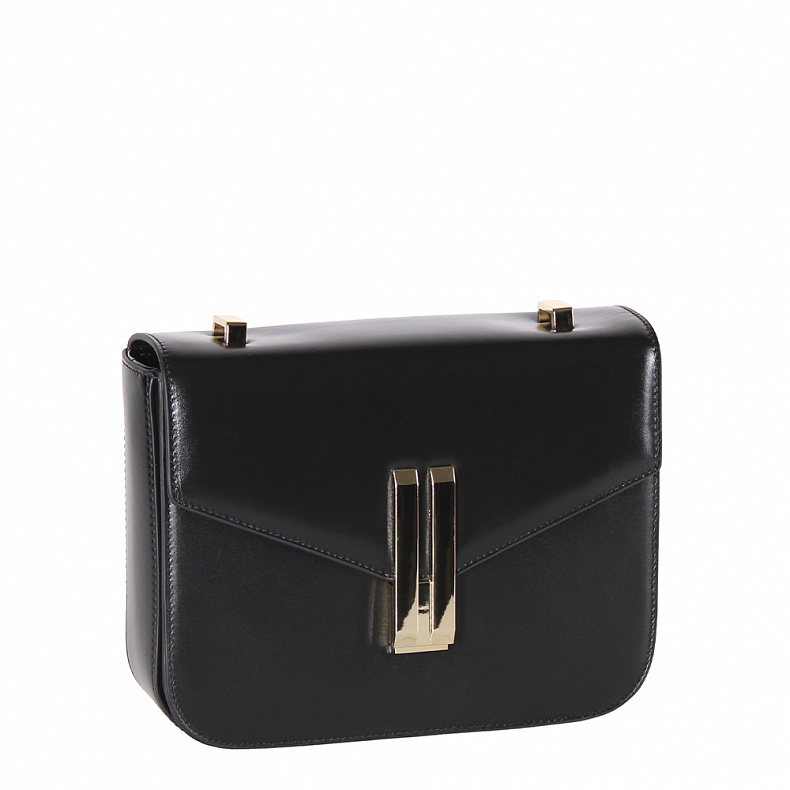Сумка кросс-боди, выполнена из натуральной кожи. Декорирована застежкой на клапане. Дополнена золотистой фурнитурой. Данная модель закрывается на клапан. Каркас полужесткий. Носится на плече. встроенный ремень регулируется по длине.