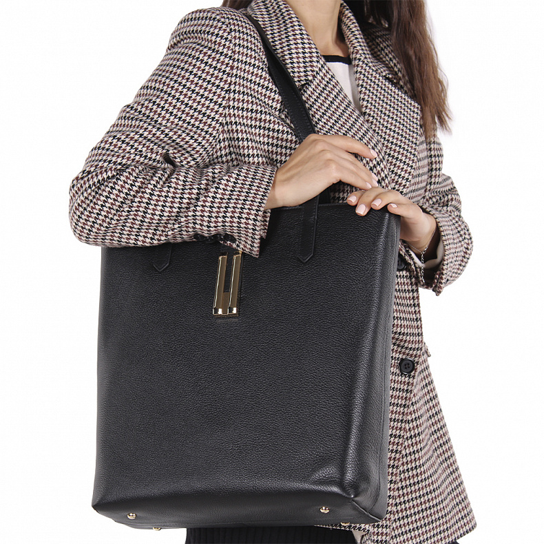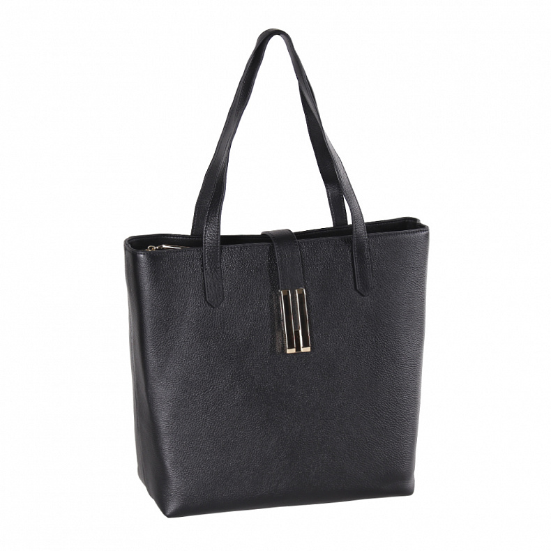 Функциональная сумка, выполнена из натуральной кожи. Декорирована хлястиком. Дополнена золотистой фурнитурой. Данная модель закрывается на молнию, носится на плече или в руке. Удлиненные ручки встроенные. Каркас полужесткий. На дне предусмотрены ножки.