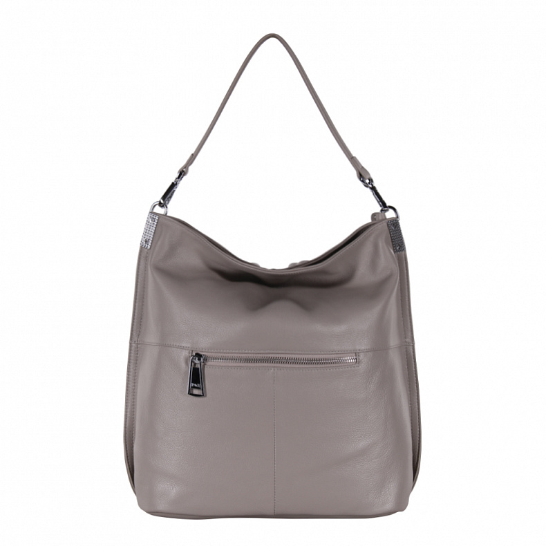 Вместительная модель, выполнена из натуральной кожи. Дополнена серебристой фурнитурой. Данная модель закрывается на молнию, носится в руке за удлиненную ручку или на плече. Каркас мягкий. В комплекте имеется брелок.
