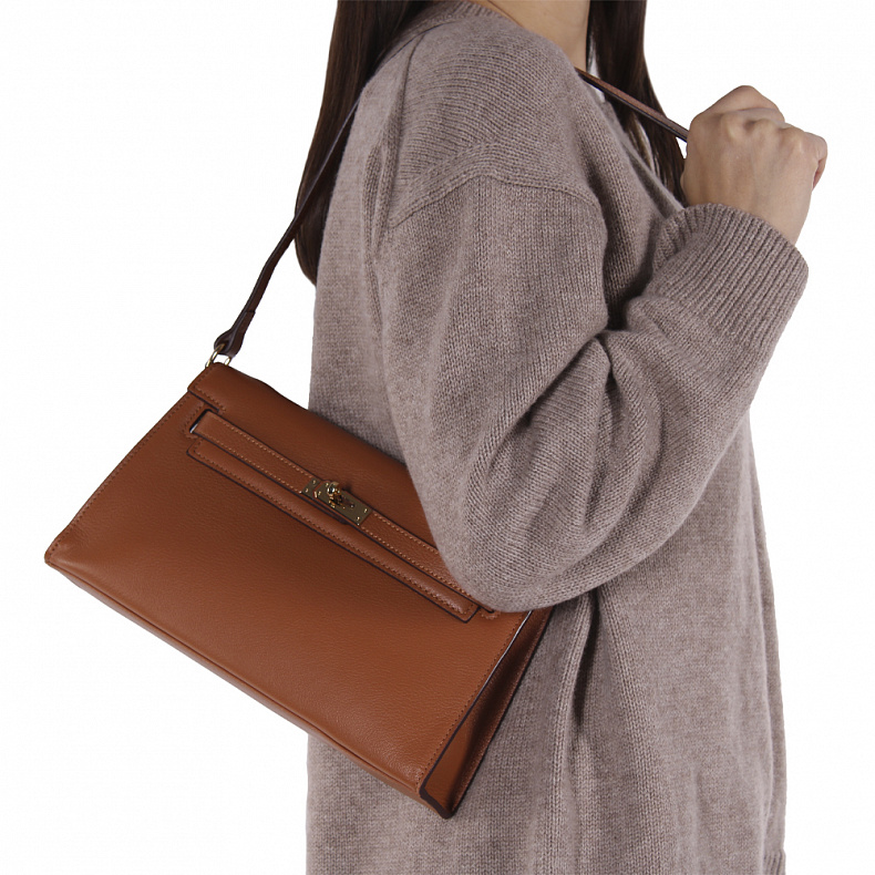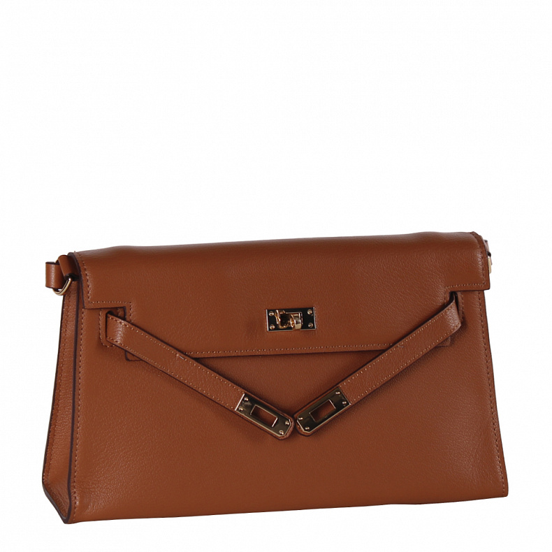 Материал: Натуральная кожа Небольшая базовая модель, выполнена из натуральной кожи.  Дополнена золотистой фурнитурой. Данная модель закрывается на клапан. Каркас жесткий. Носится через плечо за ремень, либо встроенную длинную ручку. Плечевой ремень регулируется по длине.