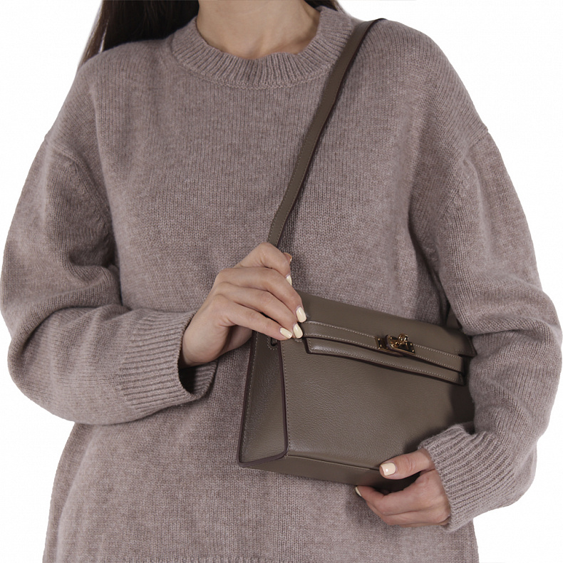 Материал: Натуральная кожа Небольшая базовая модель, выполнена из натуральной кожи.  Дополнена золотистой фурнитурой. Данная модель закрывается на клапан. Каркас жесткий. Носится через плечо за ремень, либо встроенную длинную ручку. Плечевой ремень регулируется по длине.