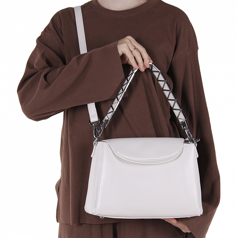 Длина (см): 28 Высота (см): 19 Вес (г): 800 Бренд: Polina&Eiterou Материал: Натуральная кожа Модель кросс-боди, выполнена из натуральной кожи. Дополнена серебристой фурнитурой. Данная модель закрывается на клапан. Каркас полужесткий. Носится на плече. В комплекте имеется съемный ремень с регулировкой длины. Или в руке за съемную ручку. Внутри: подкладочная ткань, на боковых частях карман на молнии и открытый. Снаружи: основной отдел закрывается на клапан. На задней части карман на молнии. Комментарии к товару