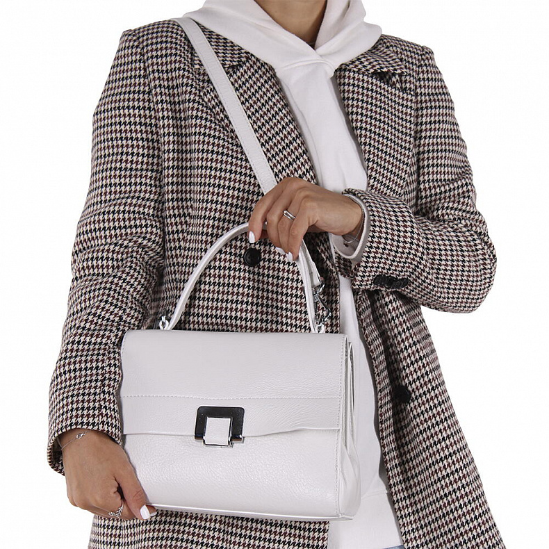 Длина (см): 25 Высота (см): 18 Вес (г): 800 Бренд: Polina&Eiterou Материал: Натуральная кожа Сумка-сэтчел, выполнена из натуральной кожи. Дополнена серебристой фурнитурой. Данная модель закрывается на клапаны, носится в руке за ручку или через плечо. В комплекте имеется съемный ремень с регулировкой длины. Внутри: внутри подкладочная часть, на боковых стенках карман на молнии и открытый. Снаружи: два отдела под клапанами на молниях. Комментарии к товару
