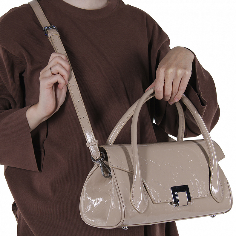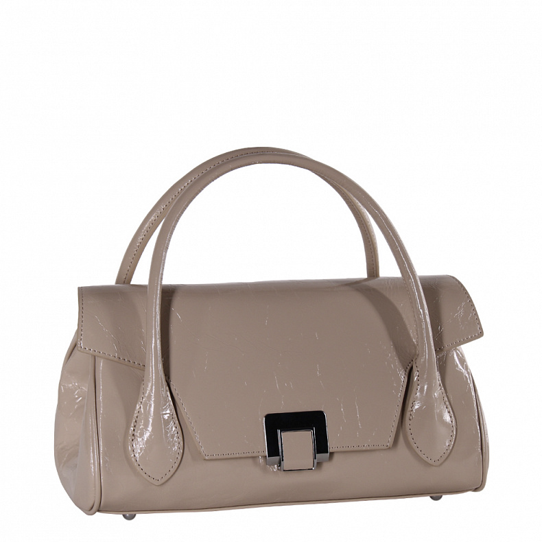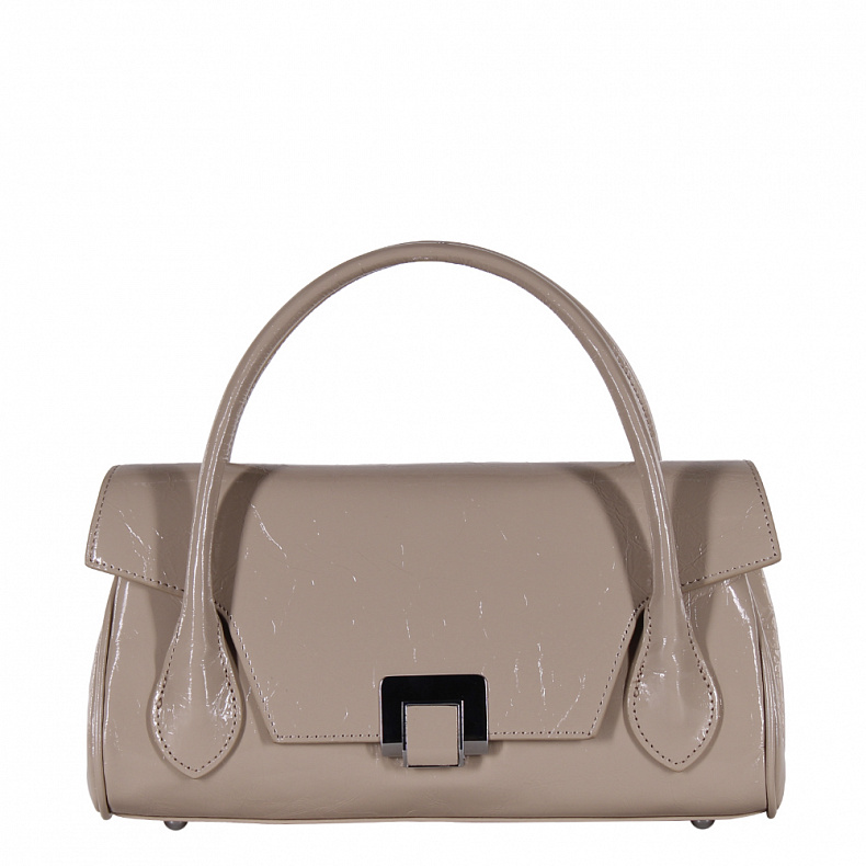 Материал: Натуральная кожа Сумка-такса, выполнена из натуральной кожи. Дополнена  серебристой фурнитурой. Данная модель закрывается на клапан. Каркас полужесткий. Носится в руке за встроенные ручки или на плече. В комплекте имеется съемный ремень с регулировкой длины. На дне предусмотрены ножки.