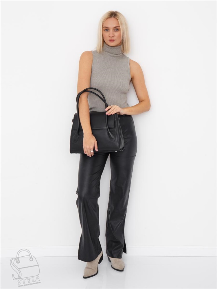 Артикул: 2424Y black Материал: Натуральная кожа Цвет: Черный Ширина (см): 10 Длина (см): 34 Высота (см): 25 Высота ручки (см): 17 Вес (г): 1100 Классическая сумка, выполнена из кожи. Декорирована ремня по бокам. Дополнена серебристой фурнитурой. Данная модель закрывается на клапан. Каркас полужесткий. Носится в руке за встроенные ручки или на плече. В комплекте имеется съемный ремень с регулировкой длины. На дне предусмотрены ножки. Внутри: подкладочная ткань, на боковых частях два кармана на молниях и два открытых. Снаружи: основной отдел на молнии под клапаном. На задней части карман на молнии. Комментарии к товару