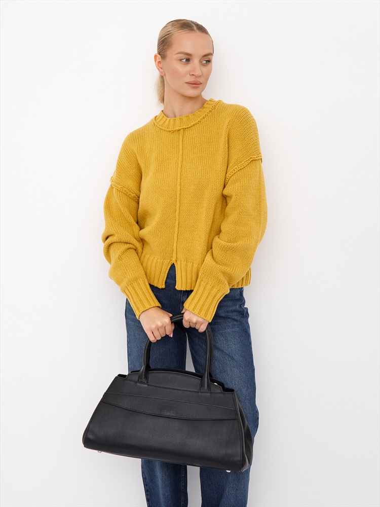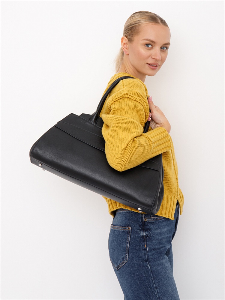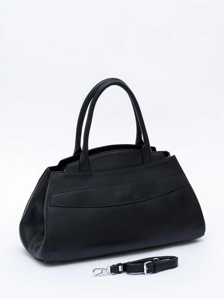 Вместительная сумка, выполнена из натуральной кожи. Дополнена серебристой фурнитурой. Данная модель закрывается на молнию. Каркас жесткий. Носится в руке за встроенные ручки или на плече. В комплекте имеется съемный ремень с регулировкой длины. На дне предусмотрены ножки.