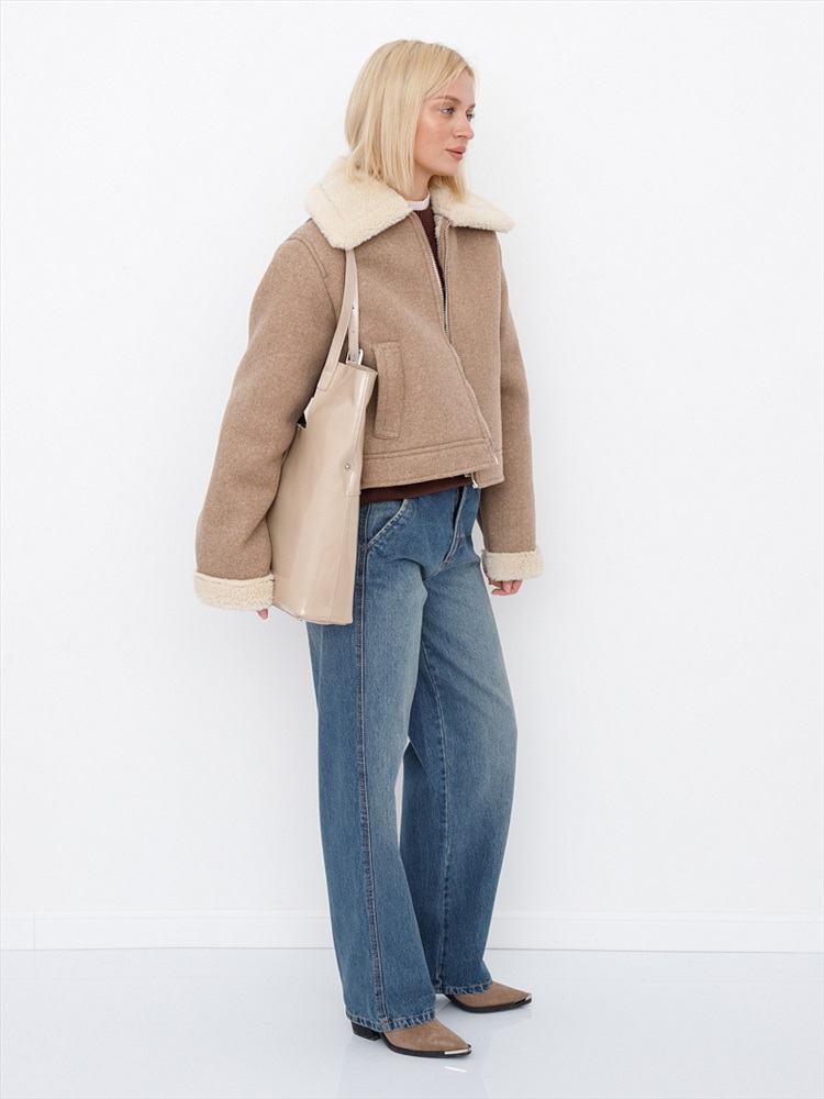 Внутри: подкладочная ткань, на боковых частях карман на молнии и открытый.