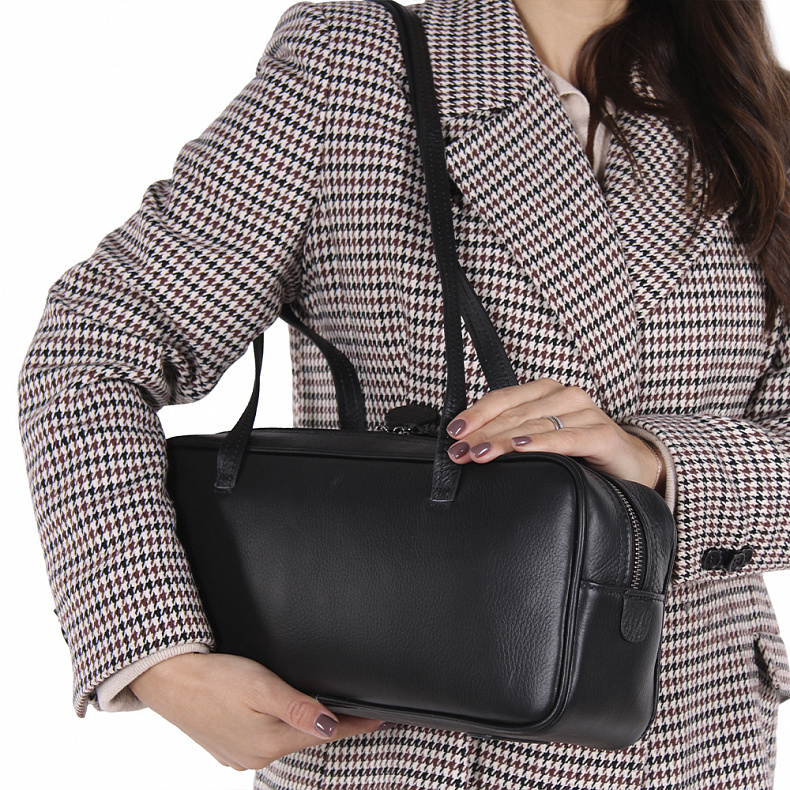 Материал: Натуральная кожа Модель-такса выполнена из натуральной кожи. Дополнена серебристой фурнитурой. Данная модель закрывается на молнию. Каркас полужесткий. Носится на плече за удлиненные ручки. На дне имеется имитация ножек.