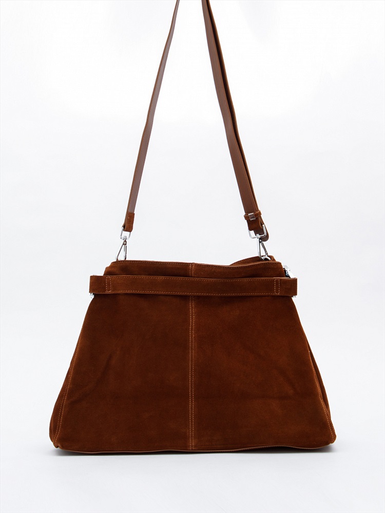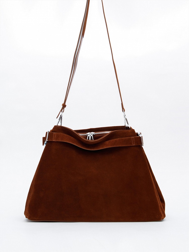 Трендовая модель, выполнена из замши. Дополнена серебристой фурнитурой. Данная модель закрывается на молнию. Каркас мягкий. Носится в на плече. В комплекте имеется съемный ремень с регулировкой длины. По бокам имеются расширители.