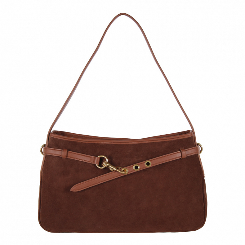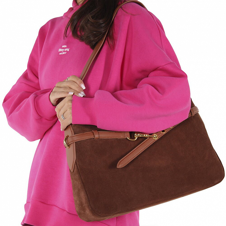 Длина (см): 39 Высота (см): 22 Вес (г): 700 Бренд: Polina&Eiterou Материал: Натуральная кожа Модель со встроенной ручкой, выполнена из замши. Декорирована ремнем на передней части. Дополнена серебристой фурнитурой. Данная модель закрывается на молнию. Каркас мягкий. Носится сумка через плечо. Внутри: подкладочная ткань, на боковых частях карман на молнии и открытый. Снаружи: основной отдел на молнии. Комментарии к товару